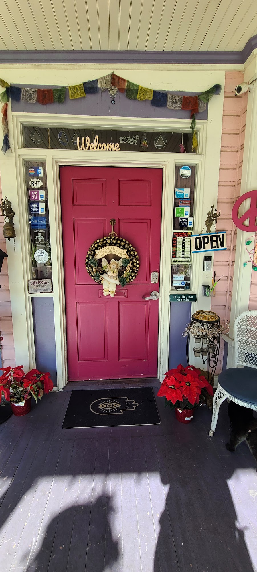 We are a small spiritual store with a hippie flare! We love spiritual relics & cross cultural truths! We strive to support beauty because it helps us focus on Good! Through Art-Natural & Human-made-we can heal our separation to Source! Healing Crystals & Jewelry are probably our favorite if we had to pick only one! Luckily we don’t-so we also love clothes, home decor, accessories, incense, herbs, candles, musical instruments, meditation tools, stickers, flags, banners, tapestries, parasols, funbrellas, & numerous other new , vintage, or antique creations! We also love to share our space with the community in positive ways! We offer Yoga, Meditation, Recovery Groups, Drum Circles, Porch Concerts, Readings, and plain old porch sitting!