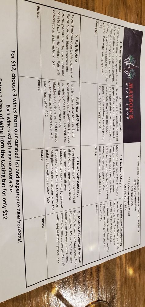 Mayson's has been a wealth of knowledge and a great place to explore various wines. We have enjoyed attending the monthly wine class that focuses on different styles. The Paint & Sips have been much fun and the Food and Wine pairing events have been lovely.