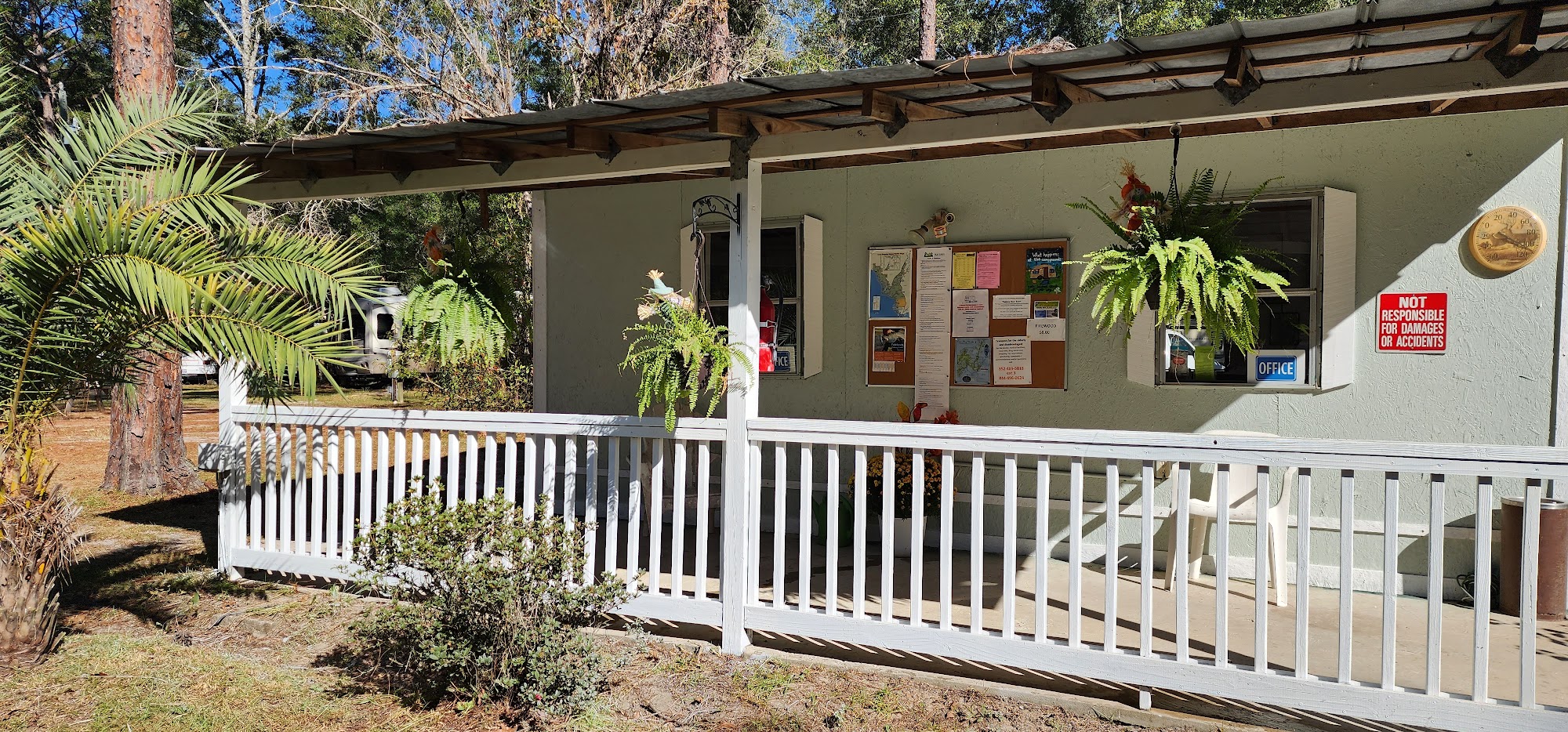 Old Town Campground is a welcoming 55+ friendly community that offers a peaceful retreat for long-term and short-term campers. Visitors are greeted with friendly waves and warm hellos as they navigate the paved roads to their campsites. The campground is centrally located, just 2.5 miles from a 32-mile bike trail and close to various attractions, including state parks, local springs, and fishing opportunities. The atmosphere is quiet and homey, perfect for those looking to relax or enjoy nature. Campers appreciate the clean facilities, including restrooms and showers, and the friendly management. Many residents enjoy walking around the big circle of the campground, hearing the sounds of roosters and cows nearby. Old Town Campground is a little gem, offering a clean and comfortable environment with a sense of community. With nearby grocery stores, restaurants, and delivery options, it is an ideal spot for those seeking a peaceful place to call home or a short getaway.