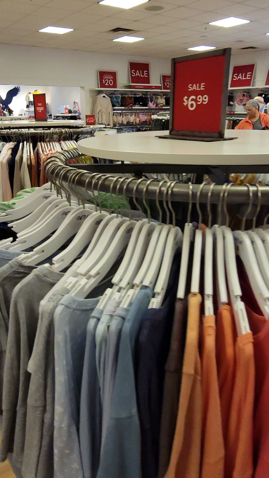 This was a nice surprise. $4.99 offline bras, $9.99 shorts in all sizes, $6.99 graphic t-shirts, and $9.99-$14.99 AE jeans in all styles and washes.