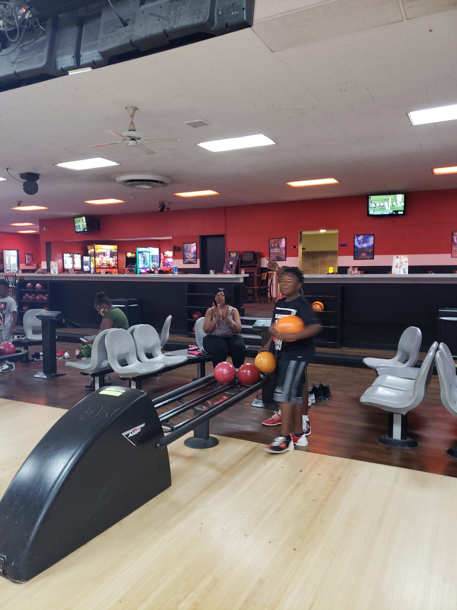 AMF Sky Lanes in Orlando, FL, offers a fun and lively bowling experience for all ages. The venue features blacklight bowling, arcade games, and a variety of delicious bites and signature drinks, making it a great place for families and friends to enjoy a night out. The staff is friendly, accommodating, and attentive, often going above and beyond to ensure guests have a good time. Reservations are recommended for a smoother experience, as the staff will prepare everything in advance and allow guests to start bowling early. The atmosphere is vibrant, with options to watch TV or music videos on large screens in front of each lane, adding to the fun vibe. While some arcade machines may not always work, and occasional lane malfunctions can occur, staff quickly responds to resolve issues and even extends playtime when needed. The facility boasts 32 lanes, ample space, and clean amenities, making it a popular spot in Orlando for casual and special outings alike. Overall, AMF Sky Lanes is a lively, friendly, and enjoyable place to bowl and create memorable moments.