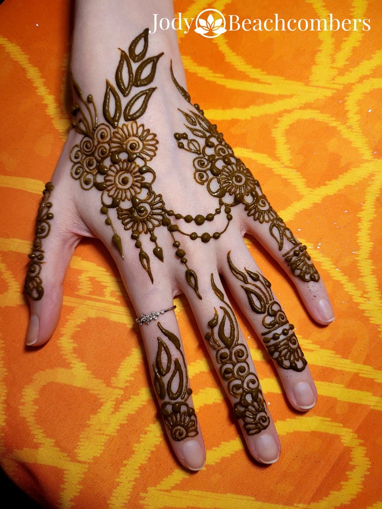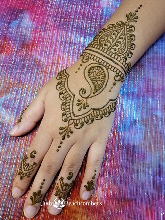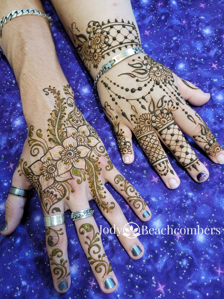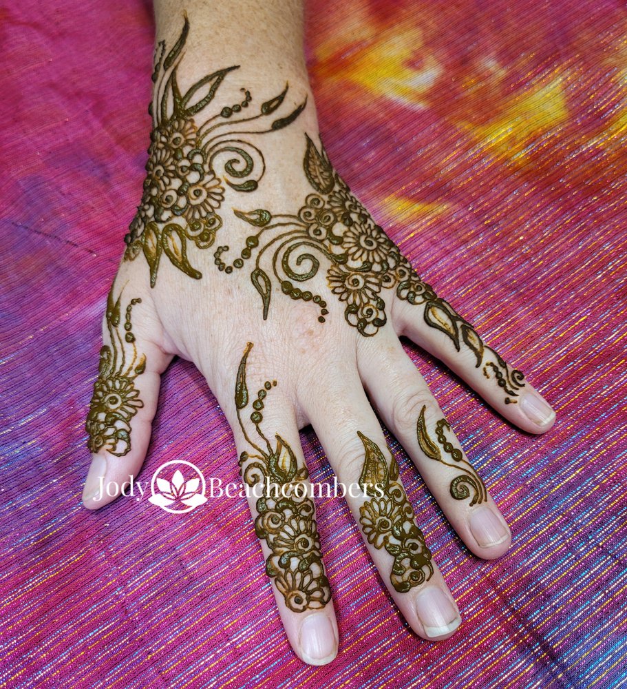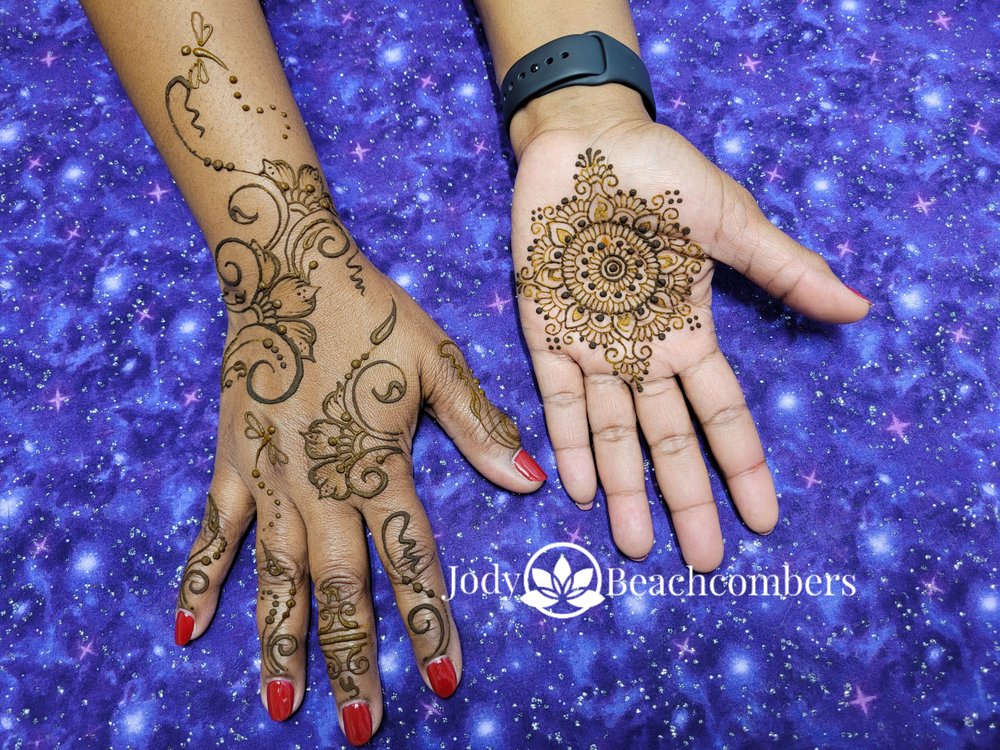 - By Appointment Only - FREE No-Contact Pickup Available - The best professional henna application and henna products in Orlando. Book a private henna appointment with nationally recognized henna artist and instructor, Jody, at our onsite henna studio. Convenient online scheduling is available. Hire a henna artist for your party and event needs. Henna workshops are available for both beginners and professional henna artists. We are also one of the largest suppliers of high-quality henna in the USA, with a complete line of henna products (including henna kits for beginners and hair henna) alongside professional henna services. Beachcombers has been proudly serving the nation's henna needs since 2004!