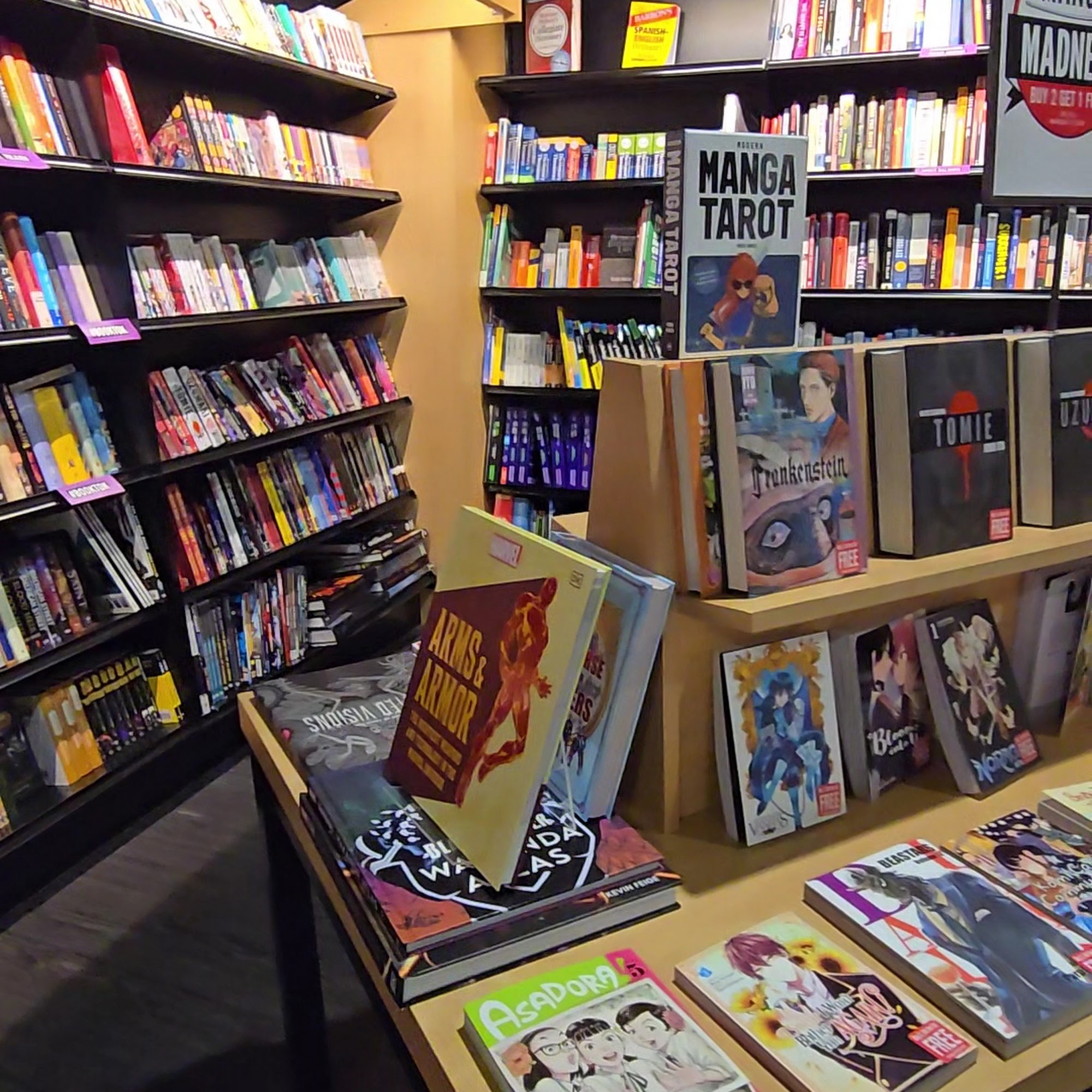 needs more books calling this MERCH STORE a bookstore is being generous. had a wide selection of University of central florida shirts and merch and a built in coffee shop for convenience. overall very good