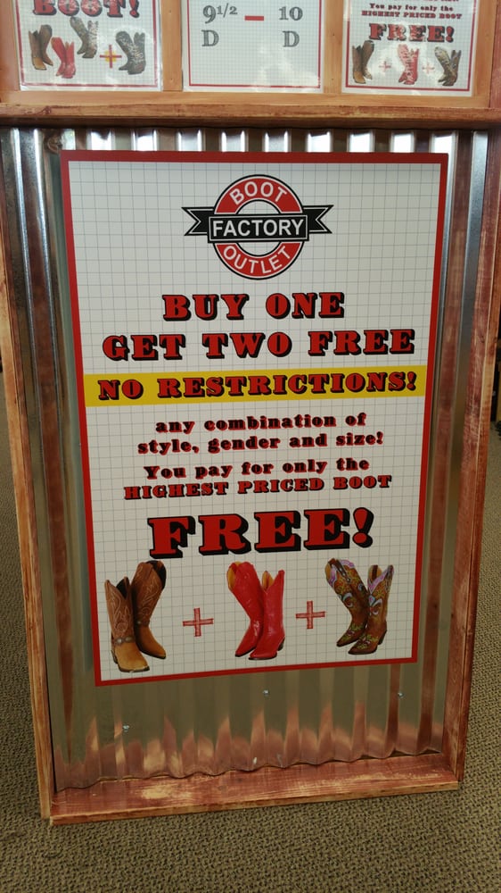 The boot factory outlet in Orlando, Florida has a much larger selection, and who don’t like buying one pair of boots and getting two pair free. Score!!!