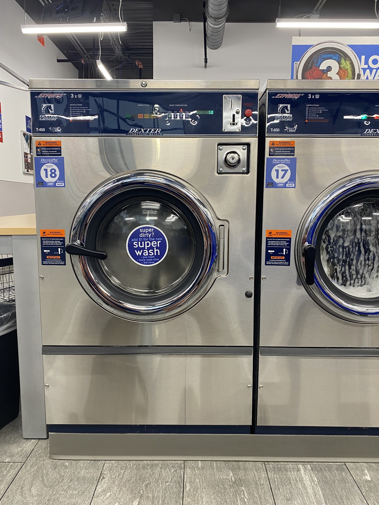Clean, brightly lit, plenty of larger washers. Felt safe, good laundromat!