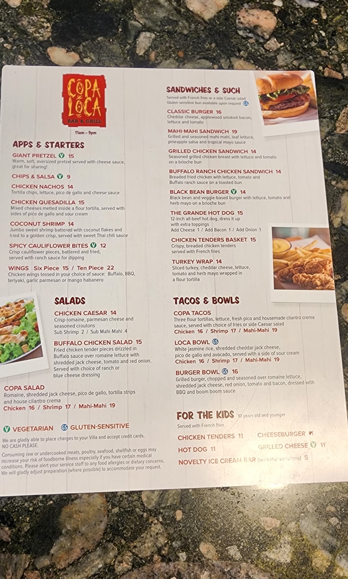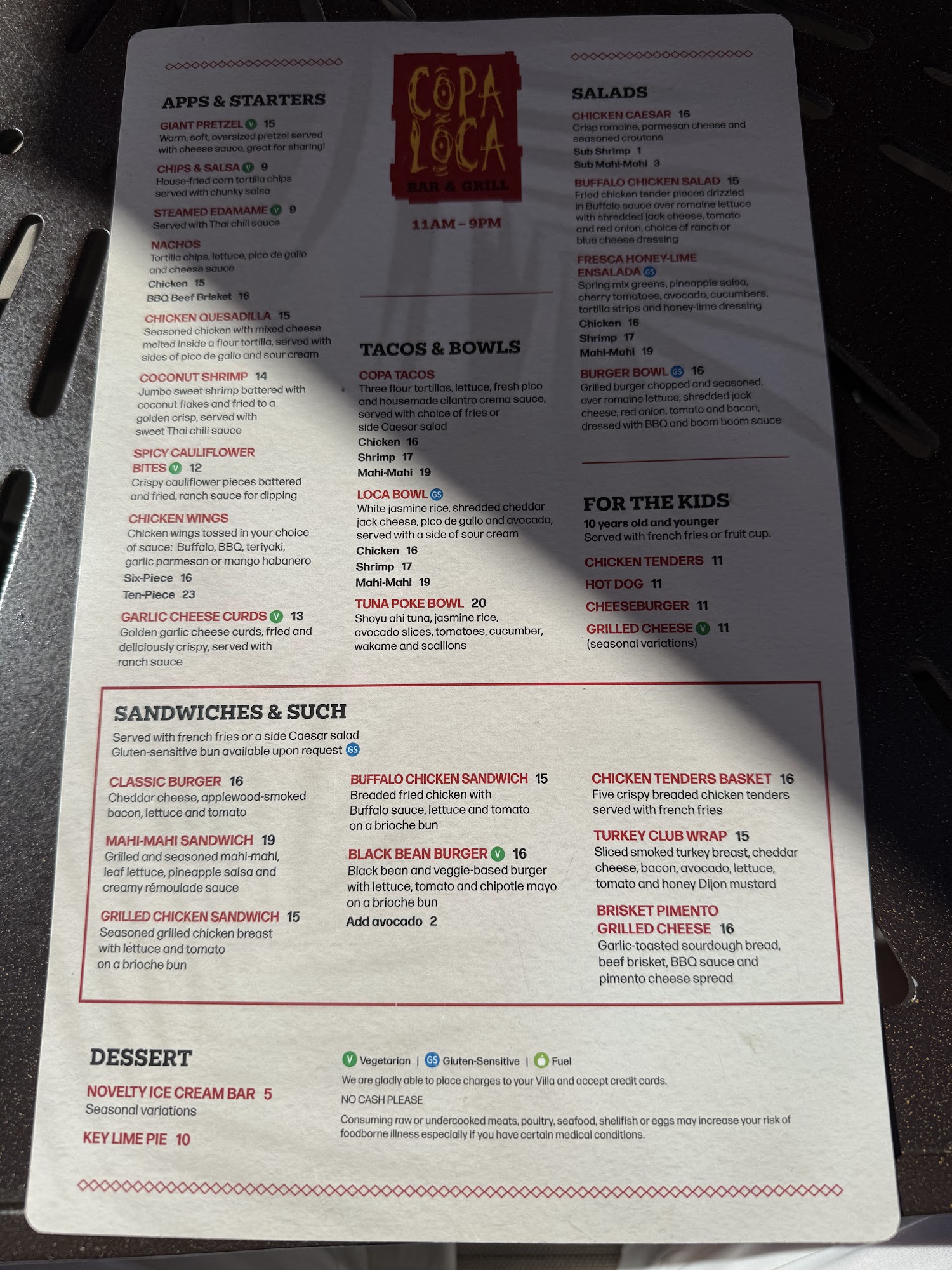 Copa Loca Bar & Grill is a super busy place with a chill poolside atmosphere and beautiful views, especially at sunset. The food is surprisingly delicious, excellent, and always good, with more interesting flavours than average pub food. The tacos are always fresh, the fries are crispy, and the bbq brisket sandwich is awesome. They have good drinks, including incredible frozen drinks like delicious pina coladas, and local Florida beers on tap. The staff is always friendly and attentive, providing great and amazing service that goes above and beyond, even for very large groups. Guests can enjoy the pool and hot tubs while dining, with lots of activities for adults and kids and major sports on the TVs. The prices are reasonable, making it a lovely little restaurant that raises the resort above many others.
