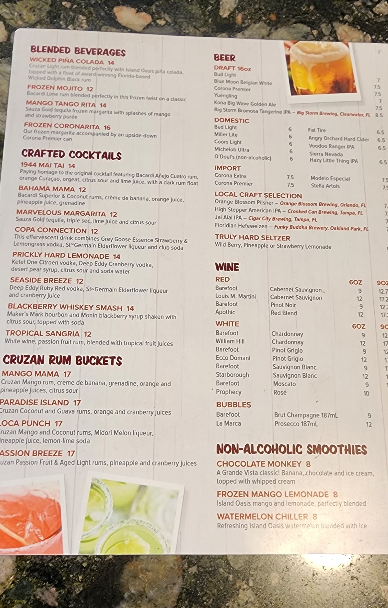 Always good food , good drinks and good service every time I go. The tacos are always fresh and fries are crispy. The bbq brisket sandwich is awesome with pimento cheese spread on it. They always have good cold pina coladas and local Florida beers on tap.