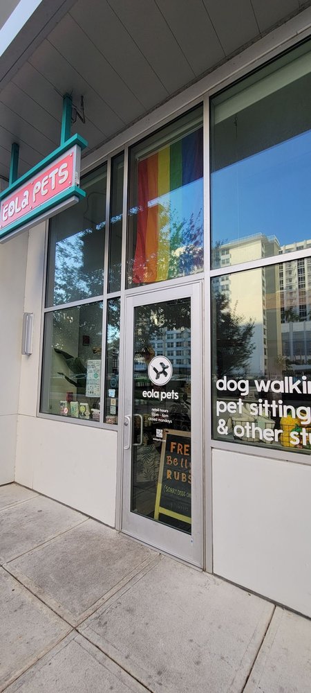 Eola Pets has become the go-to destination for trusted pet care for dogs and cats in The City Beautiful since 2016. We are licensed, bonded, and insured so you can rest assured your furry family member is in great hands. Our pet services are designed specifically for city dogs like: Dog day care, pet grooming, dog walking available 365 days a year, dog & puppy training, and in-home pet sitting. Visit our shop in person located in the the heart of the city just blocks from Lake Eola. We offer a variety of the highest quality treats, natural bones, toys and more. Eola Pets also offers the only fresh, made-in-house dog bakery in Orlando.