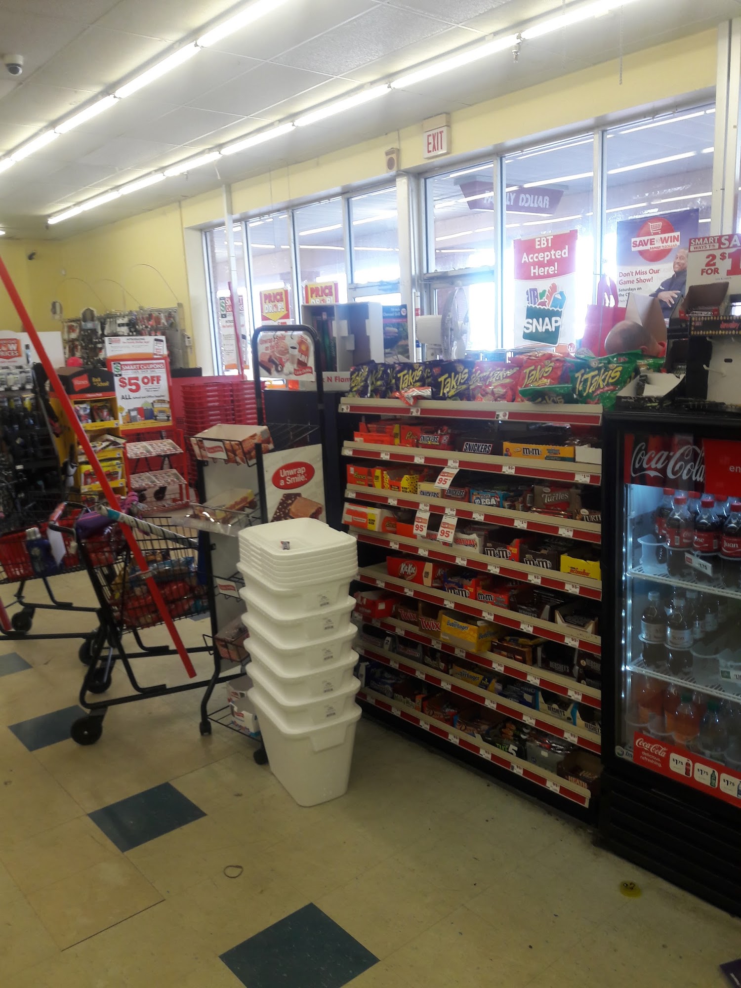 Compared to the nearby President, this Family Dollar is better on prices, but with a limited selection of products compared to the big grocery store. And it's easier to get what I want and go, which is the main reason I shop here more.All the boxes of unopened merchandise give the store a cluttered feel.