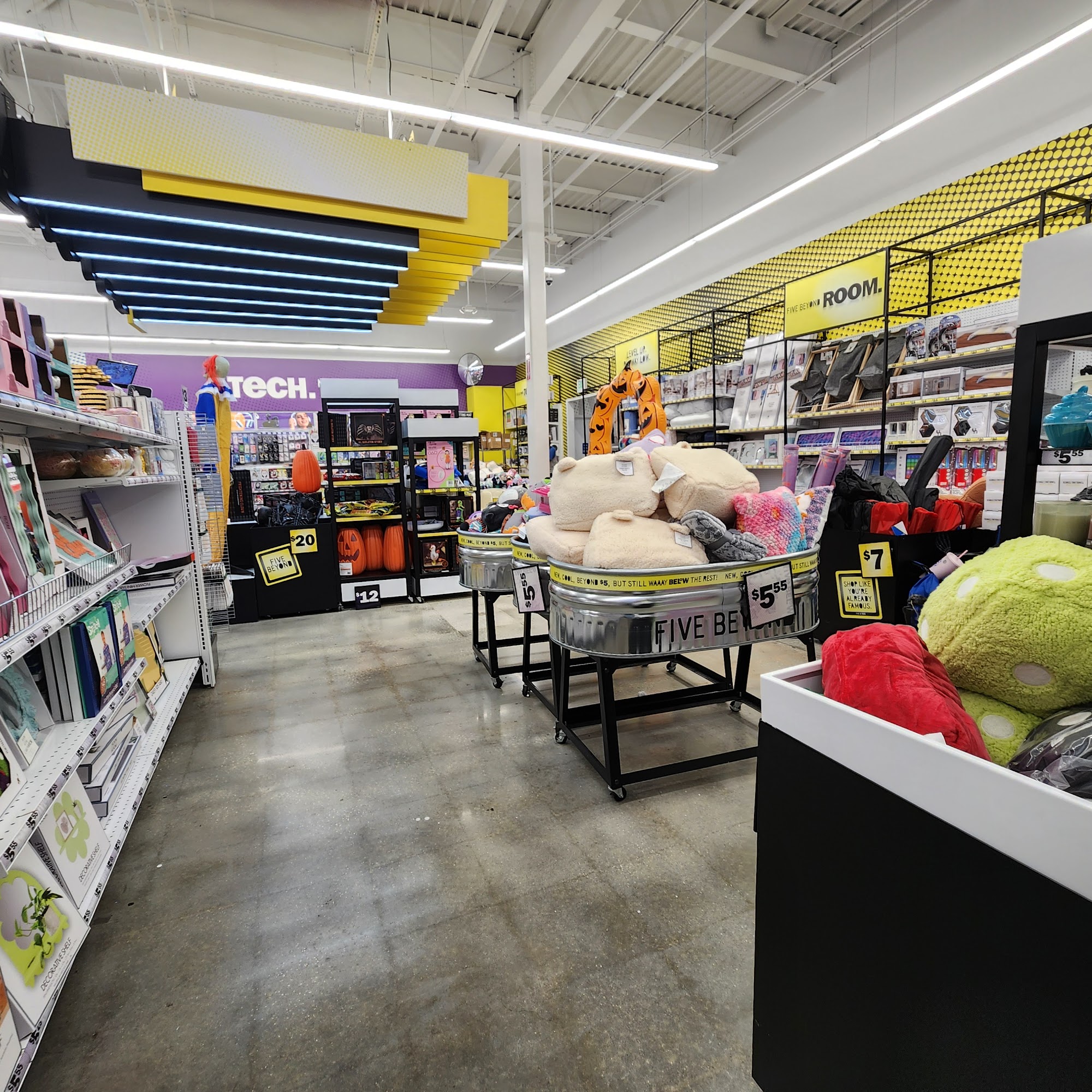 Five Below is a clean and organized store with a wide variety of products, including apparel, accessories, home decor, snacks, and a vast candy section. It offers good value, though some items can be found cheaper elsewhere. The store features a "5 above" section and clearance items at 50% off. The staff provides supreme quality customer service and is nice and helpful. The location is in a plaza with lots of parking and includes self-checkout. Some note the store can be a little understaffed and that its online inventory system between warehouses must evolve.