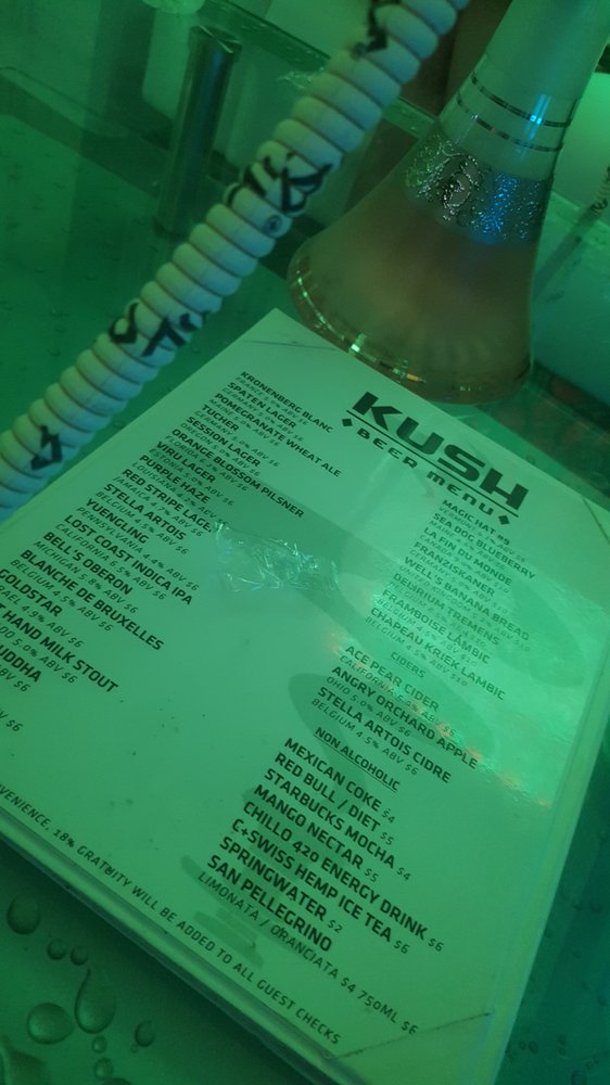 Kush Ultra Lounge is a hidden gem in downtown, located above a smoke shop. This vibrant and cozy lounge offers a unique experience for visitors. The space is designed with separate sections of couches, providing privacy for small groups. Customers can enjoy a range of hookah flavors, including mint and melon, along with beer and wine. The highlight of the lounge is the ability to control the music, creating a personalized and laidback atmosphere. The service is praised for its attentiveness, and the overall vibe is described as "awesome" and "chill." While the lounge may be difficult to find at first, those who discover it are rewarded with a memorable and enjoyable experience.