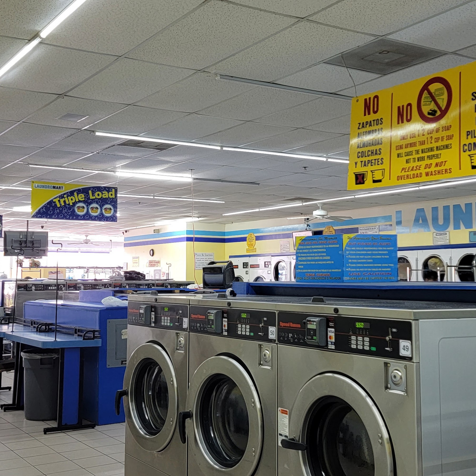 Laundromart Northgate offers a variety of washer and dryer sizes, including extra-large options, making it a convenient choice for laundry needs. The facility is well-maintained and clean, with staff who show care for the place. Customers appreciate the free pantry for those in need and the availability of massage chairs for relaxation. Many visitors have noted that the laundromat stays busy but they rarely have to wait for machines. However, some customers have expressed concerns about a few operational issues. There are complaints about the cleanliness of some slots, the pricing of laundry supplies, and the condition of the pinball machines, which have not been repaired in years. Additionally, there are suggestions for improving the mopping process to avoid wet floors and for better management of large washer and dryer usage to prevent inconvenience. Despite these issues, Laundromart Northgate remains a popular choice for those needing laundry services, especially when personal machines are unavailable.