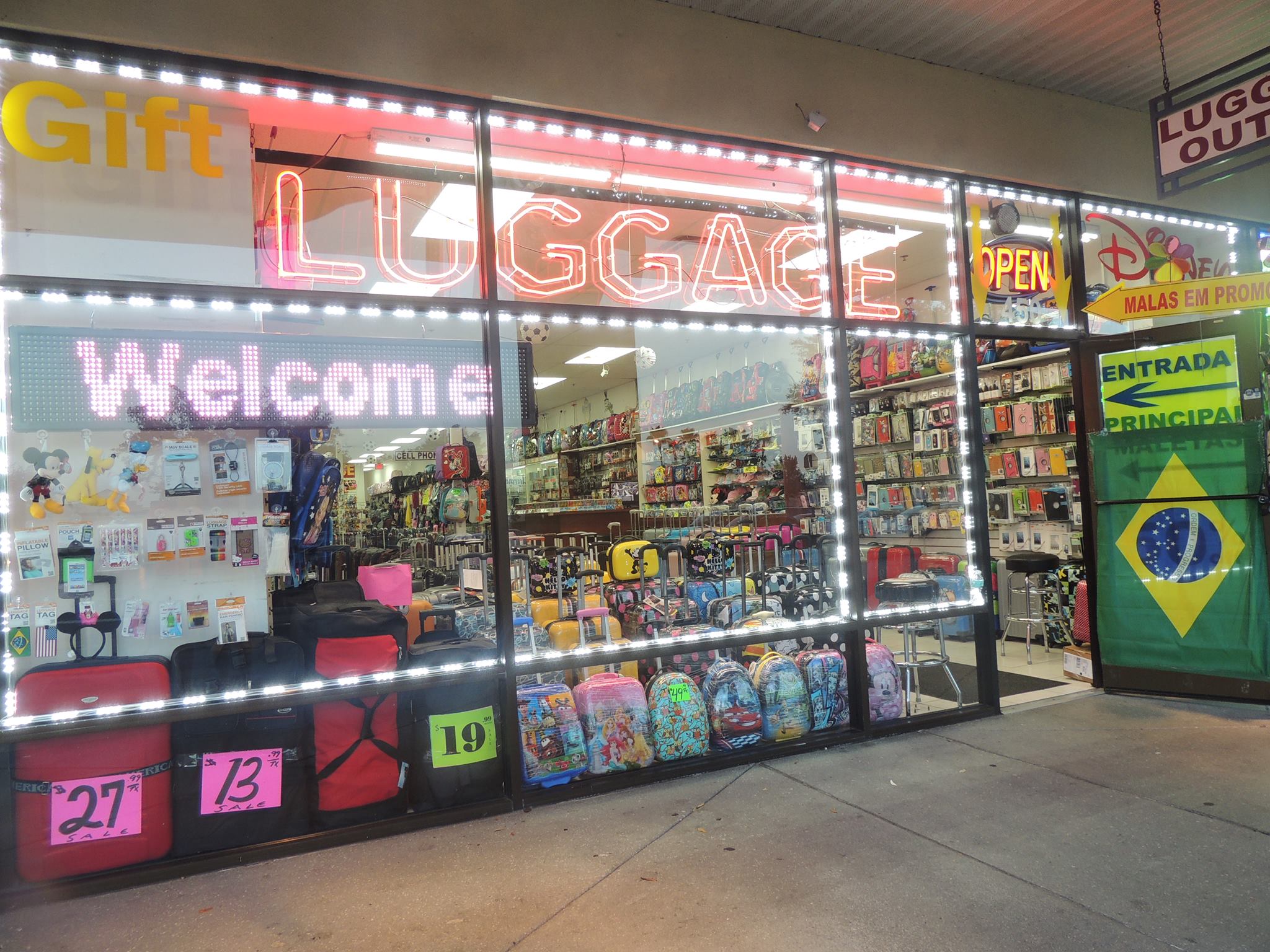 Luggage Outlet Orlando sells luggage, bags, Disney gifts, and accessories for traveling at low prices. The store offers a large selection of different types of luggage with prices for every budget, ranging from cheap to expensive. It is a great, well-organized, and clean place to buy luggage. Customers report five-star service with very helpful, knowledgeable, funny, and honest salespeople who provide excellent customer service. They are known for directing shoppers to way cheaper bags, sharing tricks for purchasing, and making shopping easy without wasting time. The store is highly recommended for any traveling needs, especially for replacing broken luggage or finding specific items like international carry-on bags. Many happy customers state they would not go anywhere else when in Orlando.