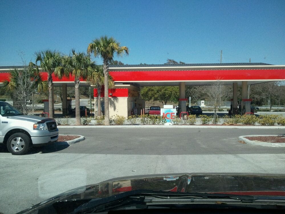 It's a gas station but the gas is cheaper there then in Washington State