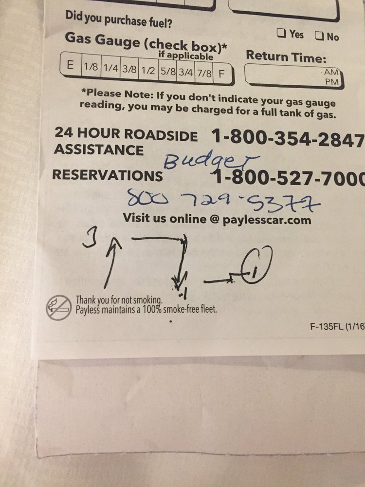 Never rent from Payless. Unexplained up-charges that ended up costing me double the rate Ibooked return of phone calls when we questioned the final bill, they cold not explain the charges and immediately sent it to a collection agency.