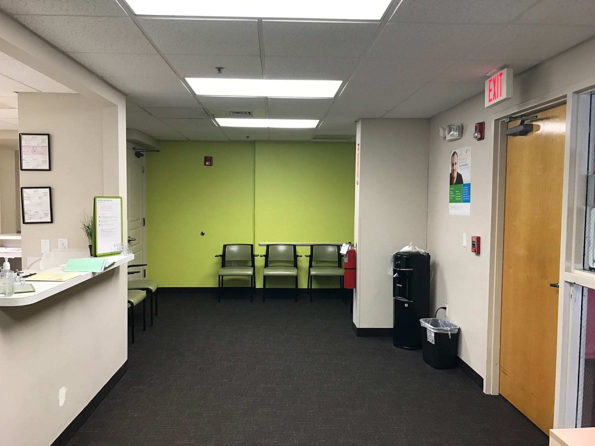 Waiting room was renovated but everyone is sitting on top of each other and no masks were available. There are appointments listed on the screen by first names and walking given the time to wait. I waited in parking lot after having to use the app to purchase my tests.