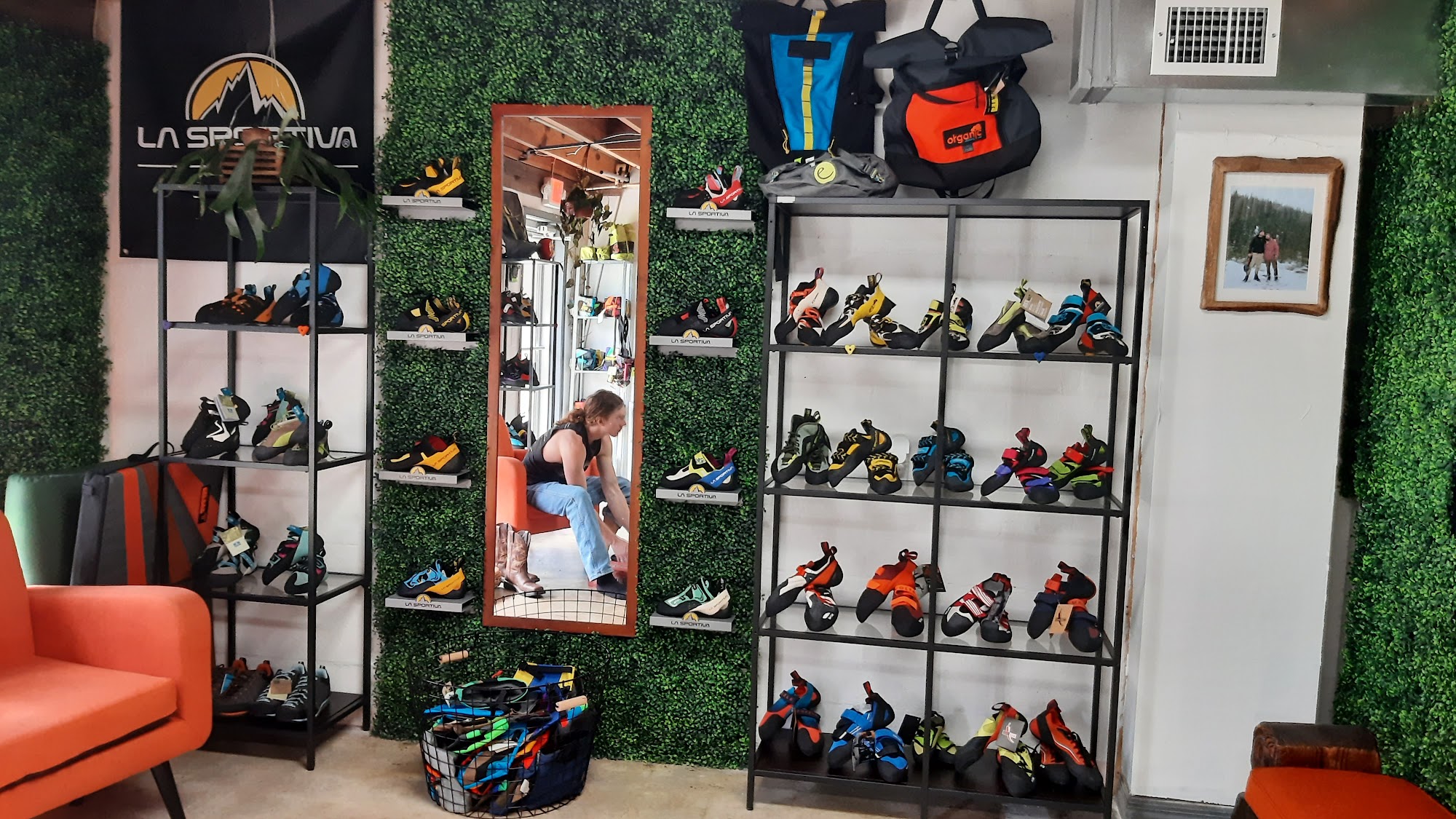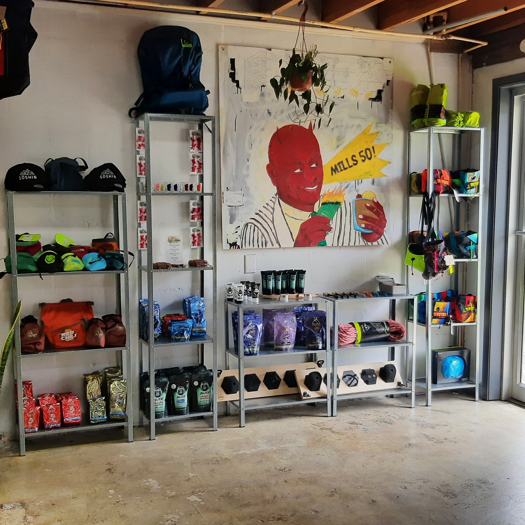 Great selection of shoes, clothes, art, and other climbing gear. Highly recommend