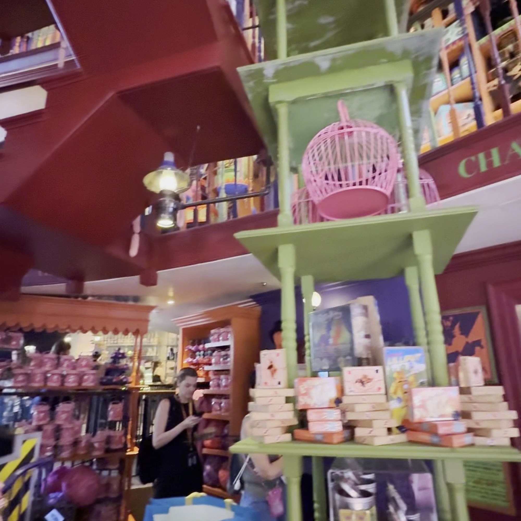 Weasleys' Wizard Wheezes is a fun and must-visit joke shop for every Harry Potter fan, located in Diagon Alley at Universal Studios. The building is instantly recognizable with its bright pops of orange and purple and a tall robotic figure on the front. The ambience is very detailed, beautifully decorated, and cramped to make you feel as if you are really in the Wizarding World. The outside features advertisements for items like Edible Dark Marks and U-No-Poo, while the windows have elaborate displays. Inside, the shop offers a colorful cornucopia of magical jokes, tricks, toys, clothing, and candy. Popular items include Skiving Snackboxes, Puking Pastilles, Fever Fudge, Love Potion, and Pygmy Puffs. Many products, such as Extendable Ears and Decoy Detonators, come directly from the books and movies. The shop is full of random fun decor and things to see, including animated exploding fireworks on the ceiling and detailed props. It connects to Sugarplum's Sweet Shop via an interior passage. There is so much to see, with new details spotted on every visit. It is a fun place to stop into for a souvenir, to check out a movie spot, or simply to look around at all the magical items, making it easily a favorite shop.