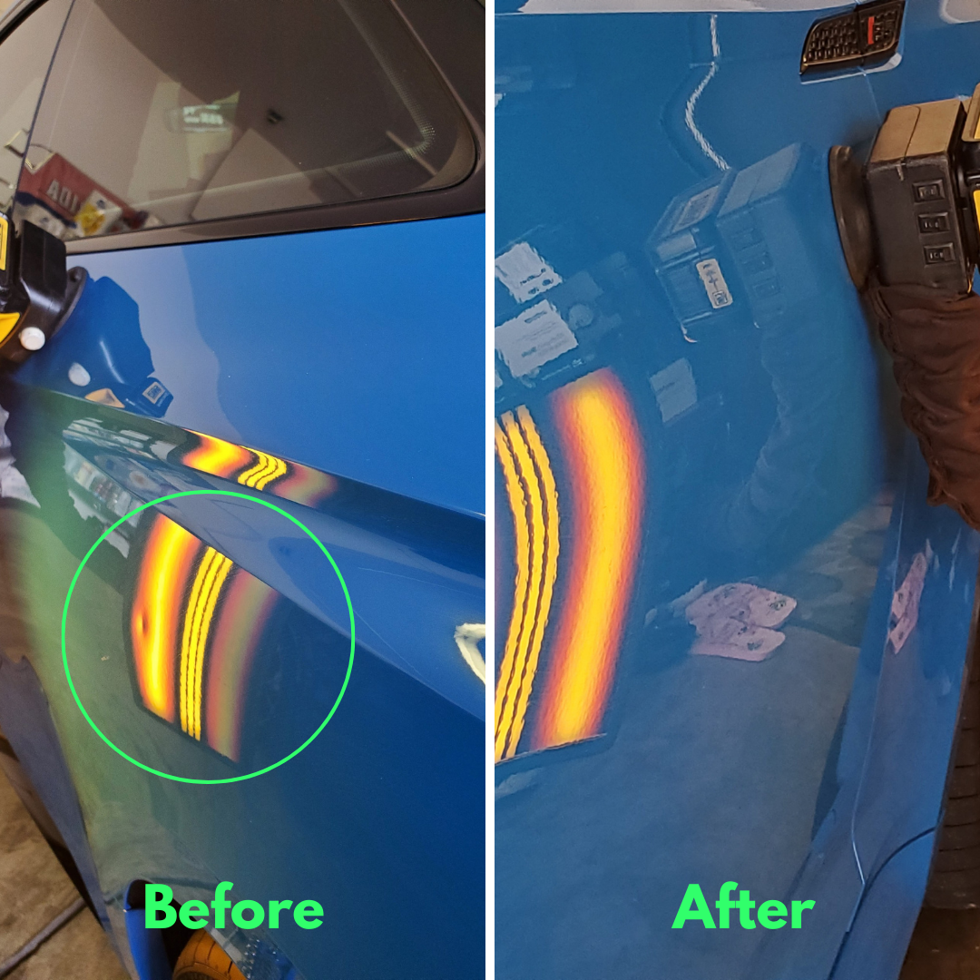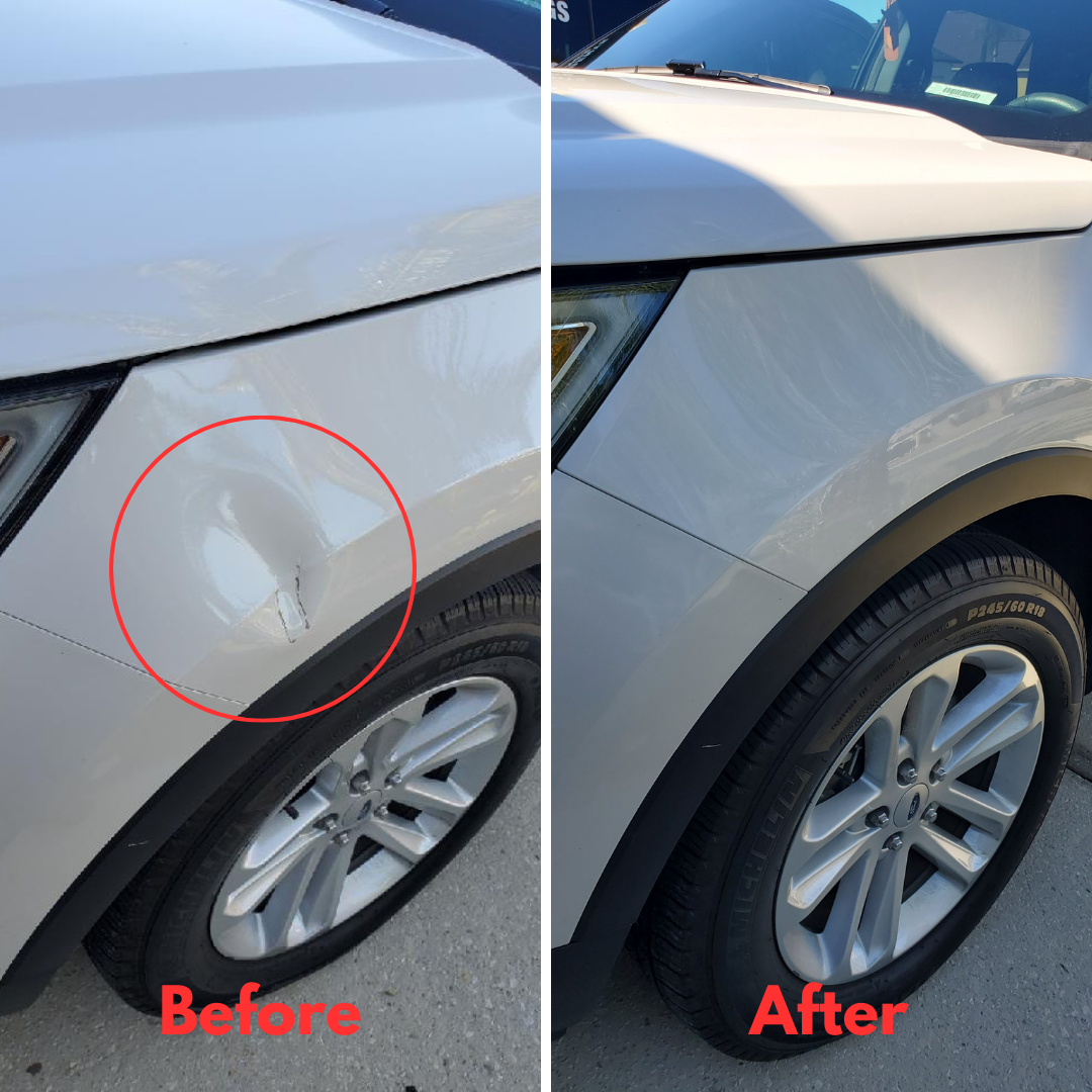 A phenomenal job at an affordable price for three dents. I'm grateful the dent on the roof was repaired without removal of the headliner. It's as if the dents were never there.