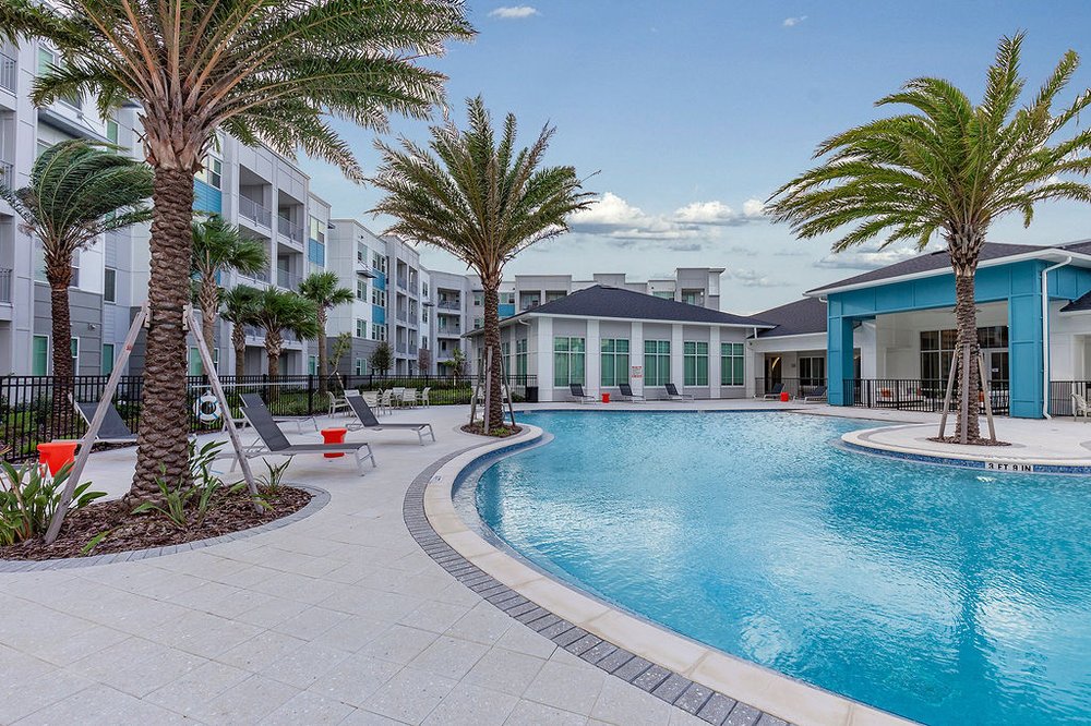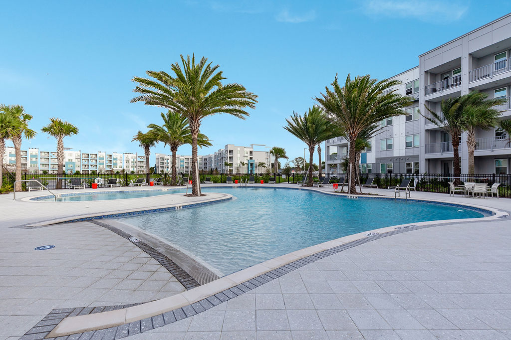 Ask about our preferred employer discounts! Contact us to schedule your tour today. Aqua Palm Bay Apartments, located within the Bayfront Community Redevelopment District in Palm Bay, is a monumental new apartment community near the Space Coast. Offering one, two, and three-bedroom apartment homes, Aqua Palm Bay Apartments features four-story mid-rise buildings, which have been selectively situated to maximize views and accessibility to natural areas, and water features within the community and the inter-coastal waterway.