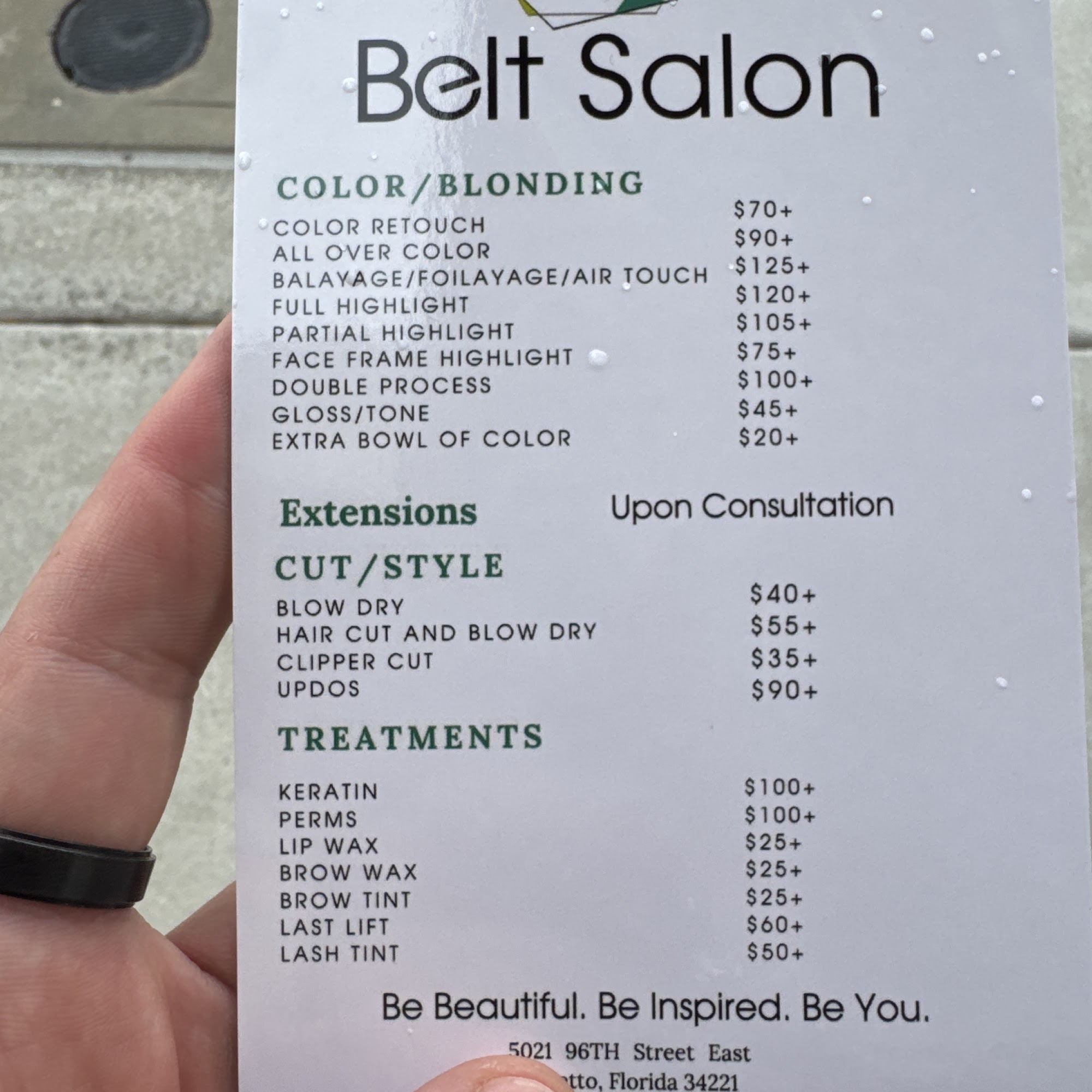 Belt Salon is a premier Aveda Concept Salon serving the North River Ranch, Palmetto, Parrish, Lakewood Ranch, Apollo Beach, and Ruskin communities. Their talented team of Aveda-trained stylists specializes in various hair services, including precision haircuts, Aveda hair color, color correction, hair balayage, and hair extensions. They also offer a range of Aveda hair treatments, such as keratin treatments, botanical repair hair treatments, and damage remedy hair treatments. The salon is committed to Aveda's vision of environmental responsibility and cruelty-free care. Clients have praised the salon's friendly staff, prompt service, and the stylists' expertise in executing their desired hairstyles. The salon is known for its pleasant atmosphere and the option to enjoy mimosas while getting their hair done. Recent reviews highlight the exceptional skills of stylists like Kate and Shirley, who listen closely to clients’ requests and make them feel confident. The staff is noted for being accommodating and professional, with many clients expressing satisfaction with their haircuts and overall experience.