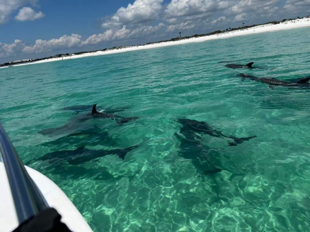 Here at Fintastic Adventures we offer private boat tours in Panama City Beach, FL aboard a very comfortable 27 foot center console. Customers can choose from a variety of trips that offer snorkeling, dolphin watching, Shell Island excursions, and sunset viewings. We can carry a maximum of 6 passengers. Please feel free to call or text if you have any questions.