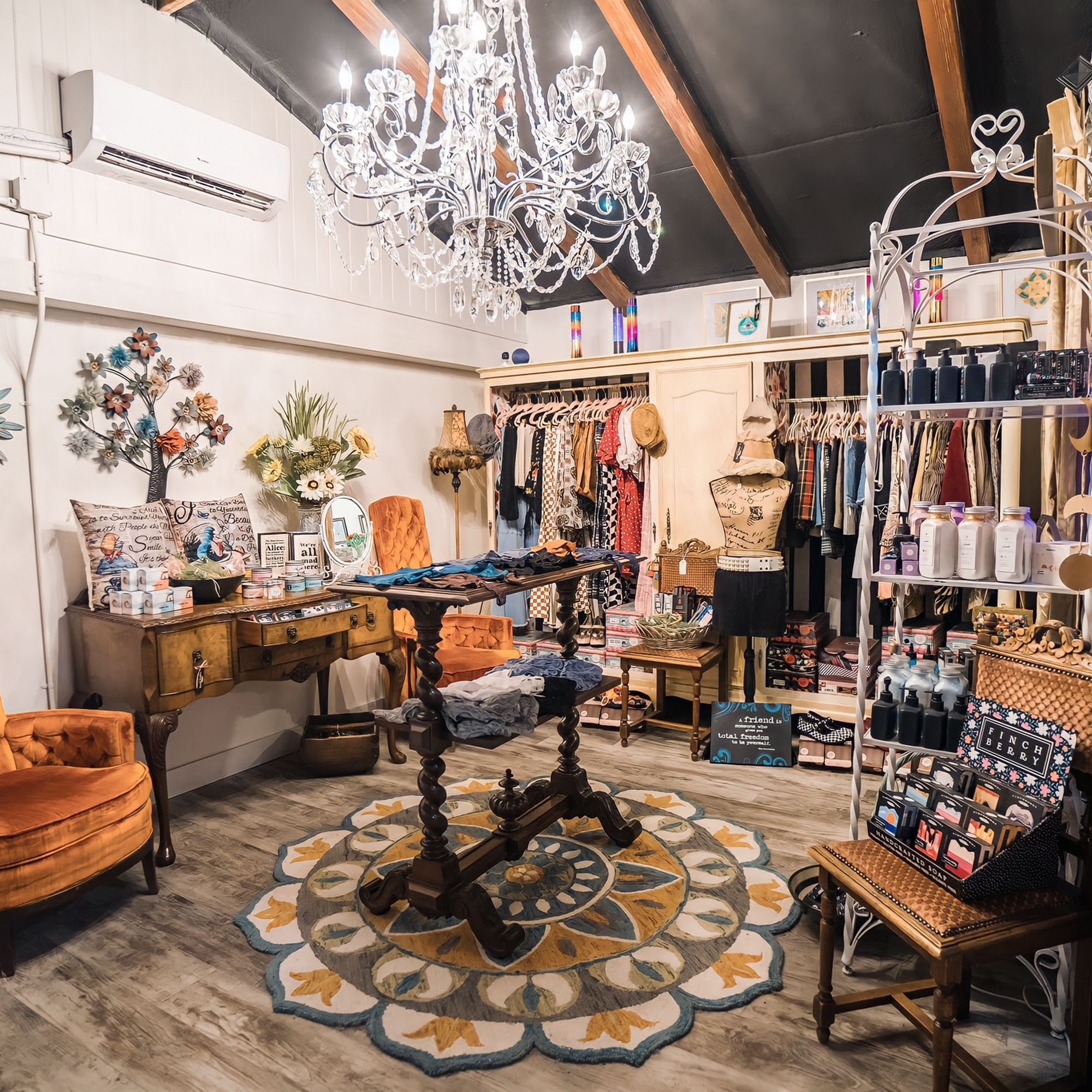 Unique boutique, where you will find a special something. Moderately priced considering the quality of goods period owner is very friendly and helpful!!