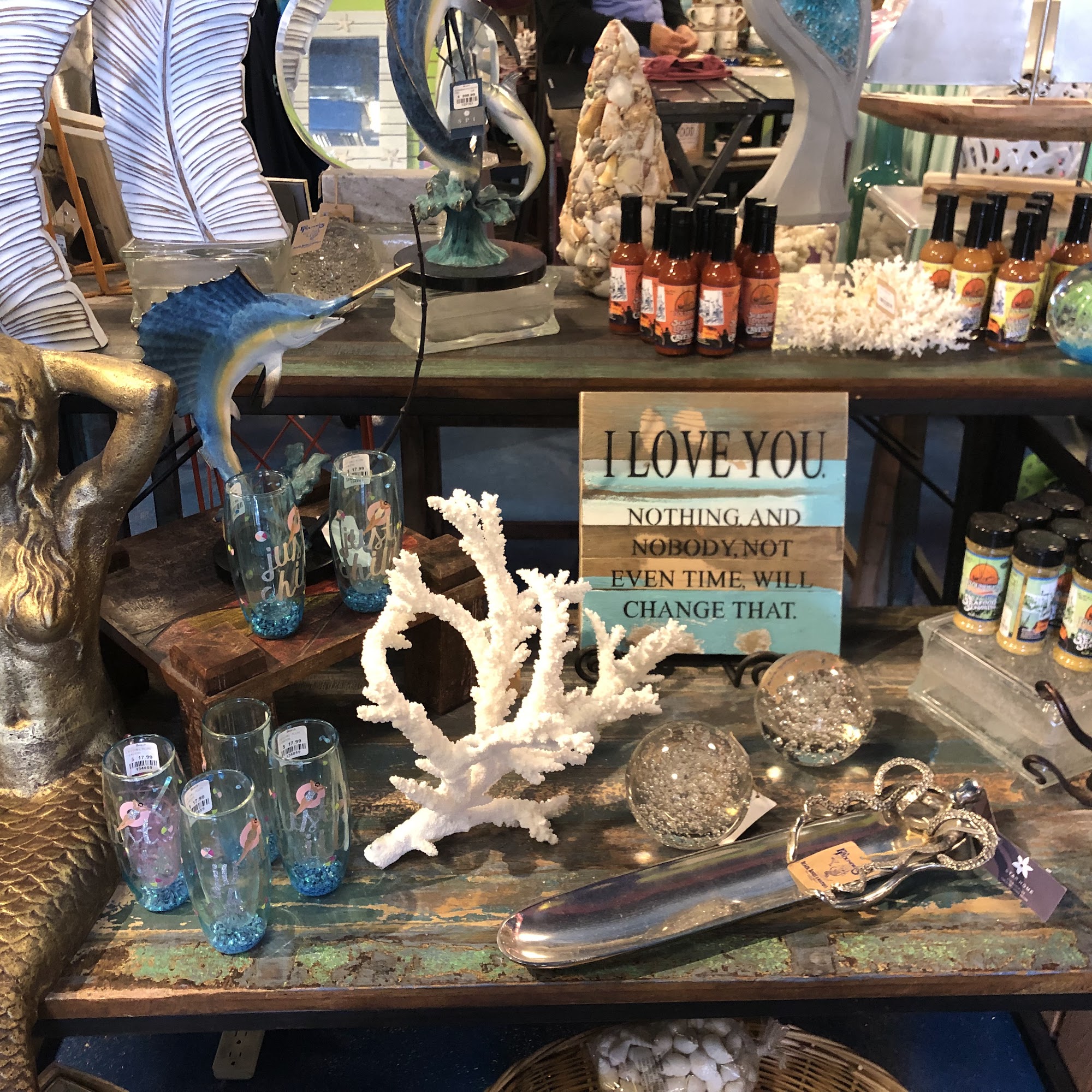 Island Trader is a souvenir and gift shop attached to Flounders Restaurant. It is a long-standing, family-friendly store that many visitors recommend. The shop offers a wide selection, including beach souvenirs, local crafts, beachy gifts, apparel, alcohol, swimsuits, towels, clothes, jewelry, sunscreen, purses, and Florida-made wine and candles. Reviews note the staff is friendly and the items are of good quality that lasts, offering more meaningful selections than other basic tourist shops. While some find it a great place for touristy stuff, multiple reviews mention that prices can be a little pricey or expensive, which is common for the beach area.
