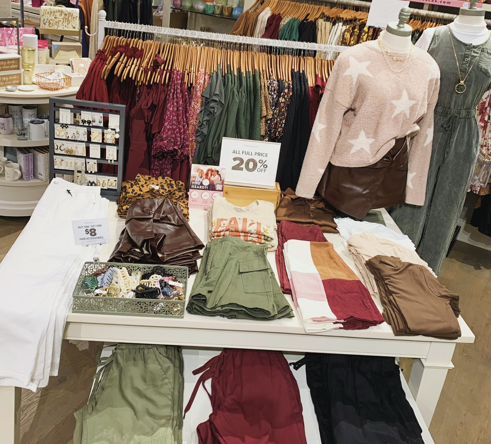 Francesca's is a popular store known for its friendly staff and fashionable items. Customers appreciate the helpful employees who can make great suggestions, like pairing accessories with outfits. People enjoy browsing the wide selection, although some mention waiting times and the importance of proper return procedures. Overall, it is a favorite shopping spot for those looking for stylish clothes and accessories.