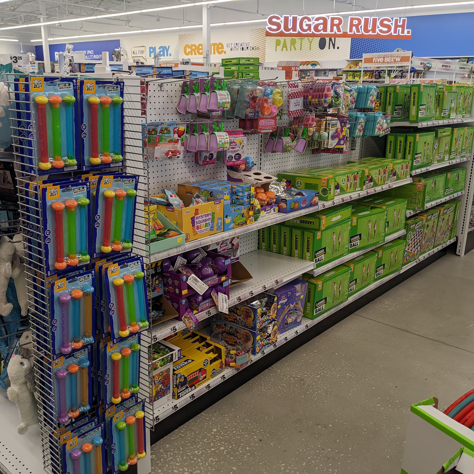 Five Below is a popular retailer known for its high-quality products at affordable prices, primarily catering to tweens and teens. Most items are priced between $1 and $5, with some special items available in the Five Beyond Shop. The store features a bright atmosphere filled with a variety of merchandise across eight categories: Style, Room, Sports, Tech, Create, Party, Candy, and New & Now. Customers appreciate the clean and organized layout, making it easy to find products. Many shoppers leave with great bargains, enjoying unique snacks, toys, and other fun items. The staff is noted for being attentive and friendly, providing excellent customer service that enhances the shopping experience. Overall, Five Below offers an enjoyable and affordable shopping adventure for all ages.