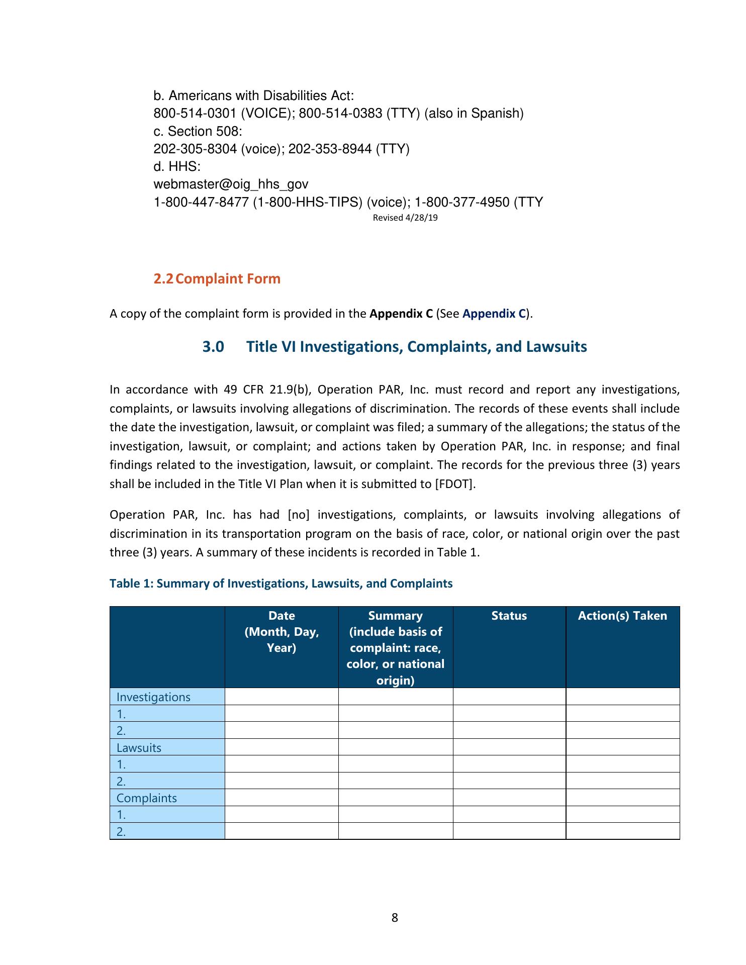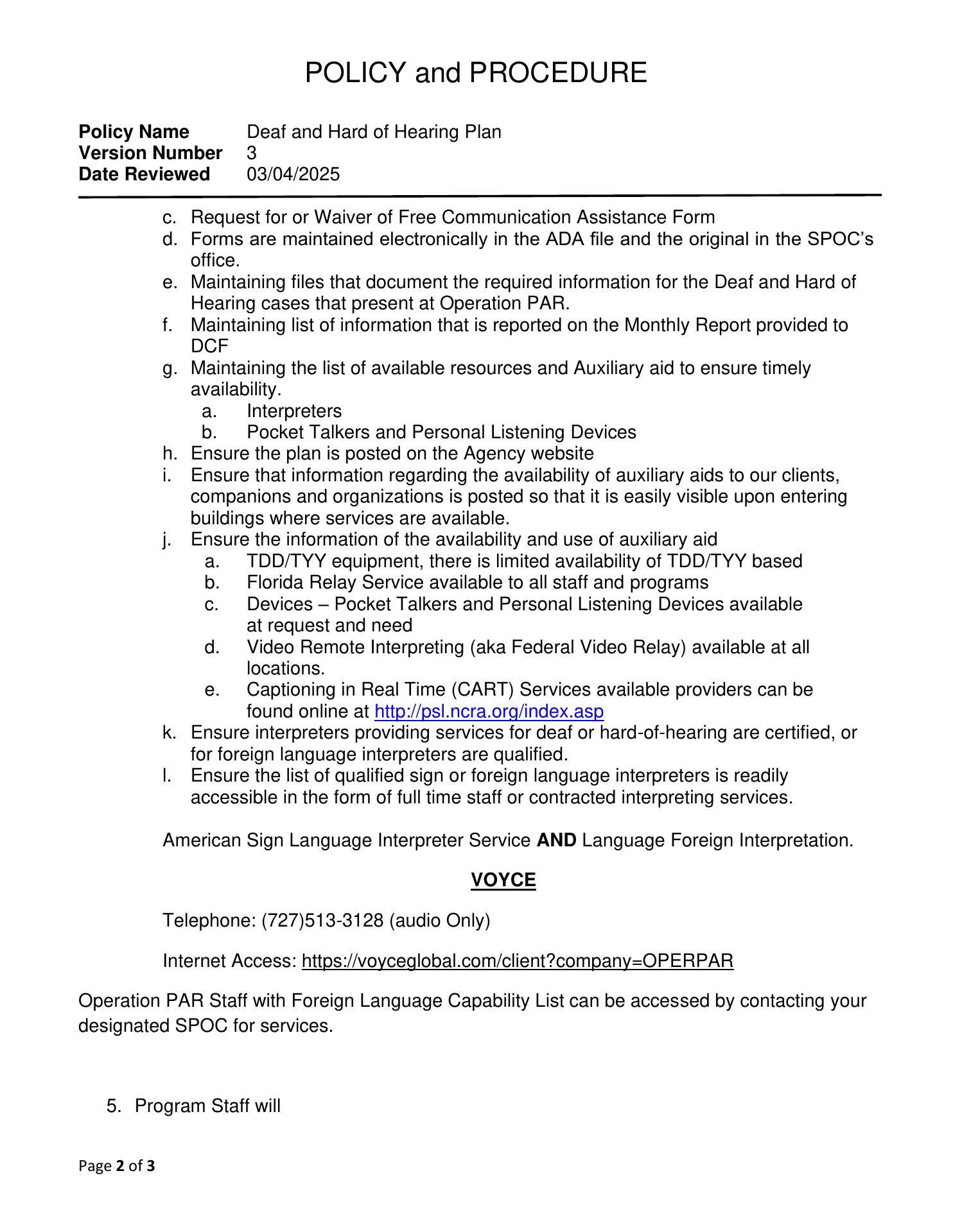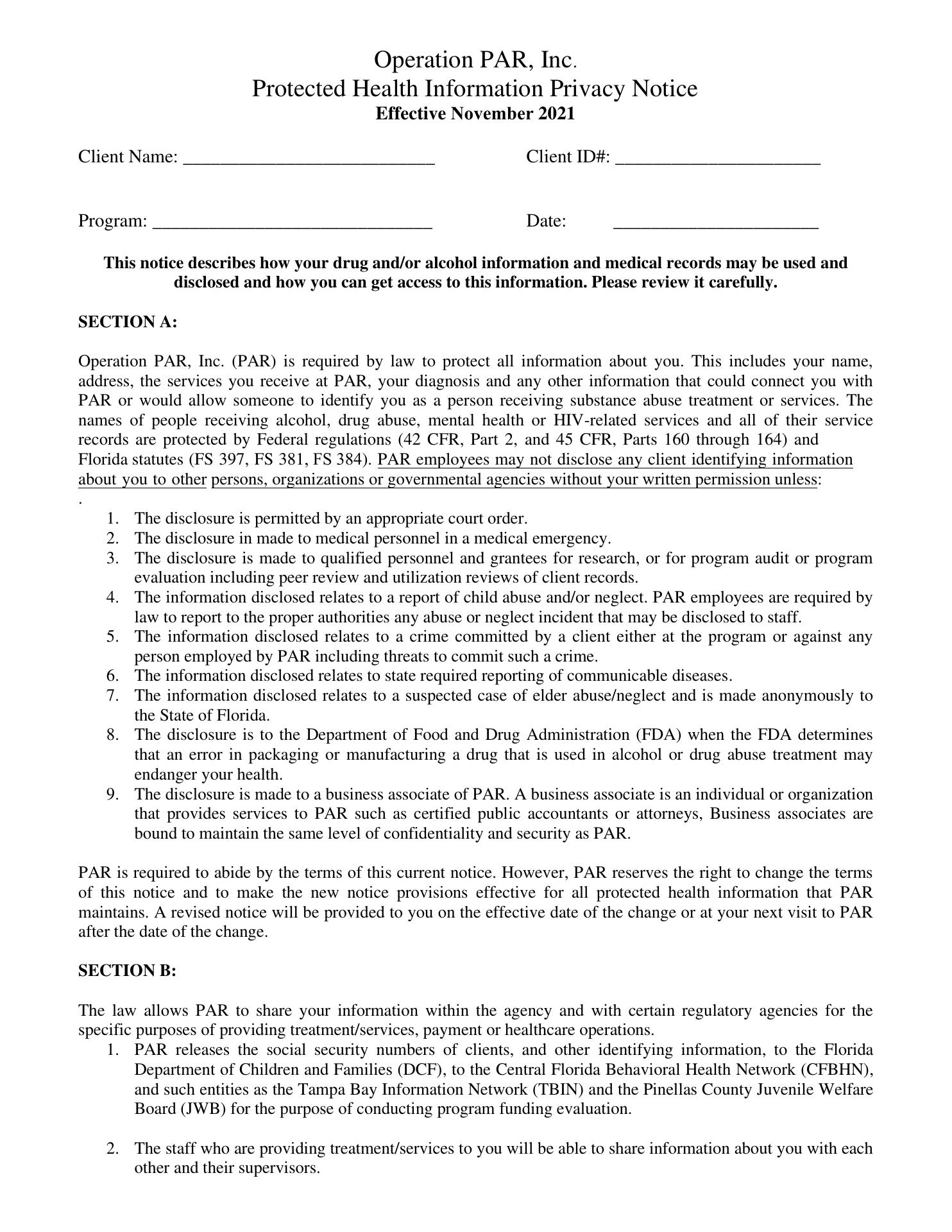Operation PAR Inc