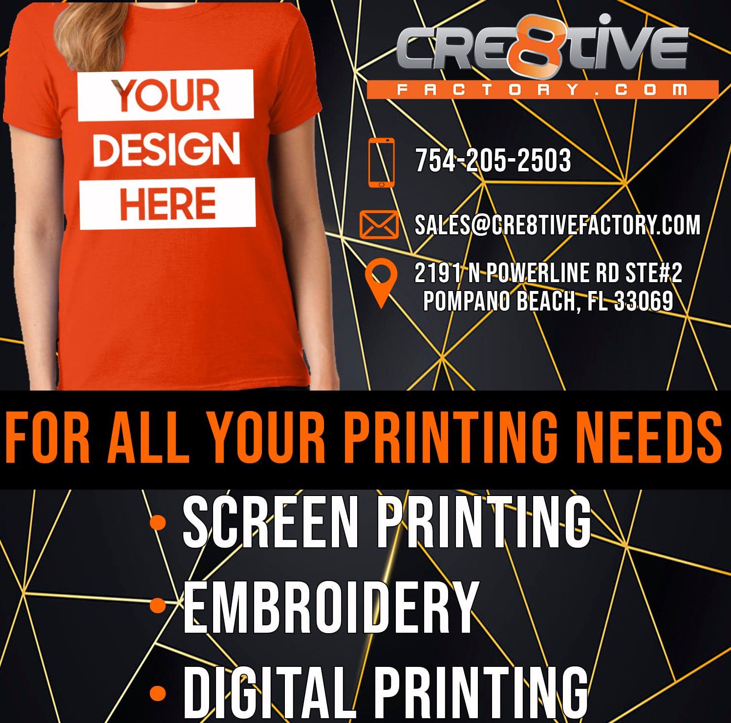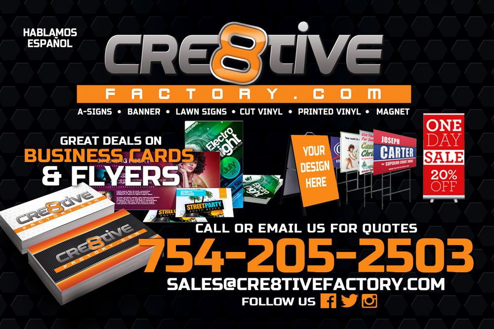 I absolutely love this company! They have been extremely helpful and FAST. I've ordered business cards, t-shirts, and signs, all of which I have been very happy with. I highly recommend Cre8tive Factory for all your business needs ?