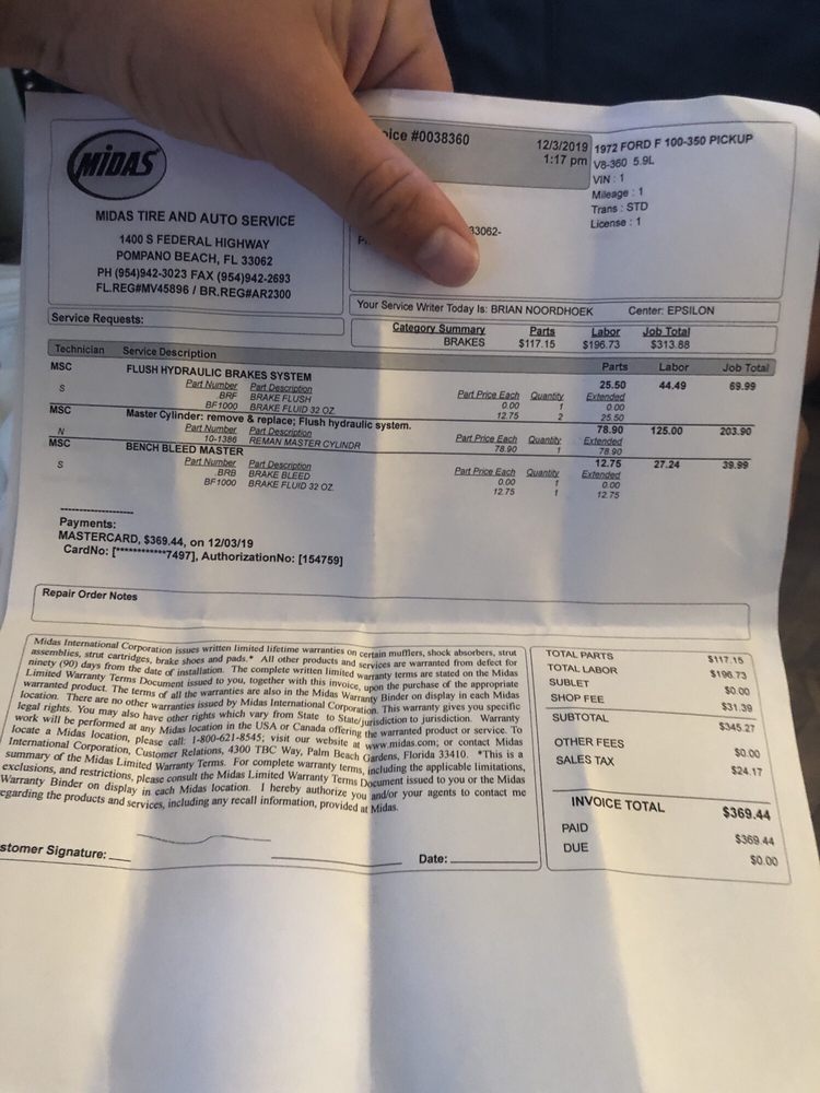 I love this Midas over any other.From the manager to the employees and especially Erzra always are professional in what they do and dealing with customers from ordering parts in a timely manner and keeping me informed of what's going on.I truly enjoy this location.I bypass all the others to go to this one.