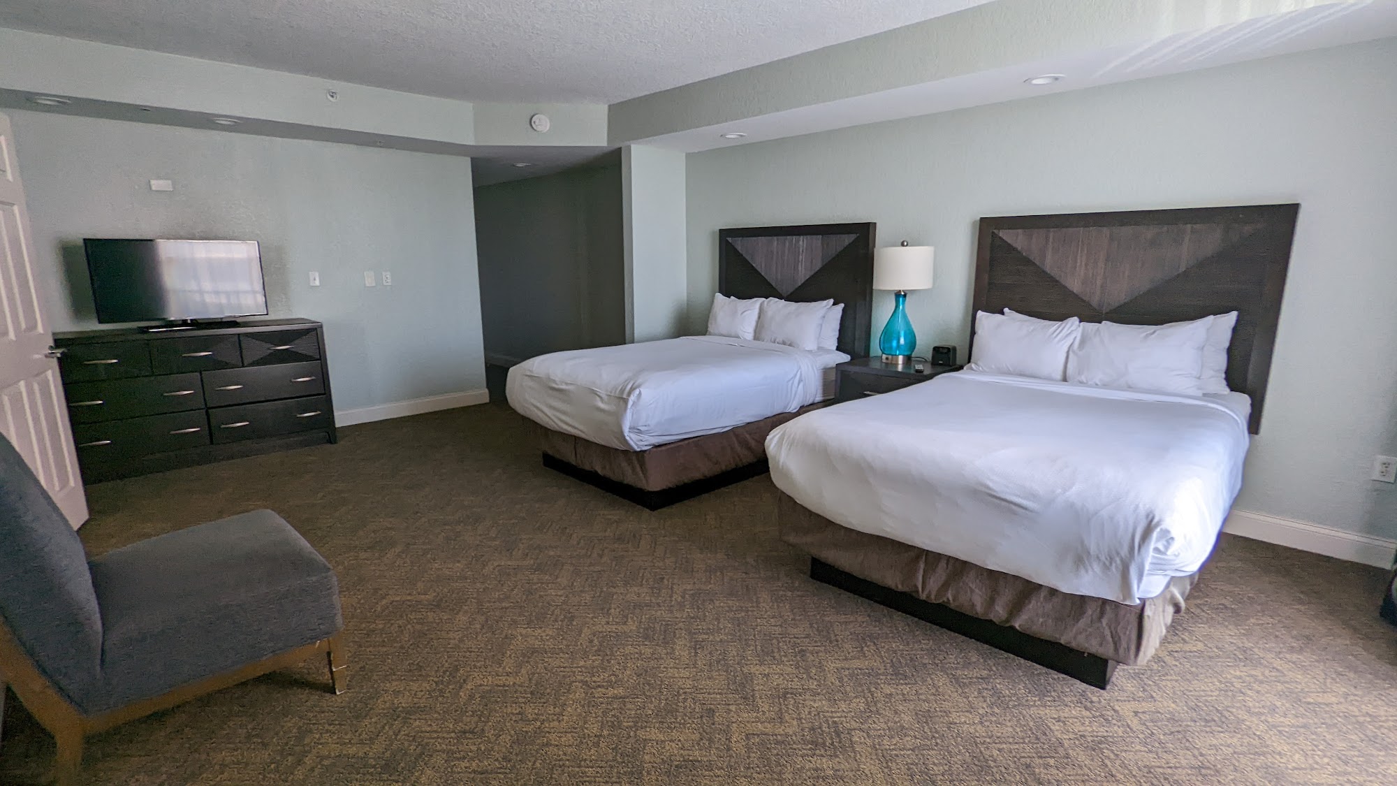 The family and I have visited this location 3 times. Although they have a few more near the beach, I find this one more kid friendly. We stayed at the main tower where check-in is and they have a bar and pool with hot tub and a slide. My daughter had a great time. There are also lots of activities during the day as well.