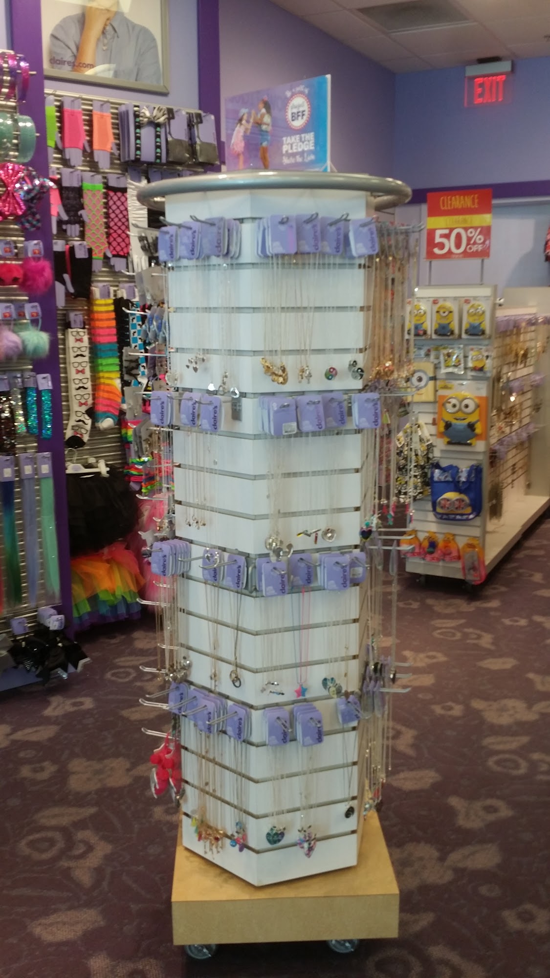 Claire's is a store for ear piercing and fun fashion accessories like jewelry, hair accessories, and brands such as Hello Kitty. It is a destination for earrings, bracelets, bags, and beauty items. Reviews note that the prices are outrageous unless there is a deal. Customer service experiences vary, with some staff being very nice and doing great during ear piercing, while other visits find staff distracted and the store unresponsive to phone calls.