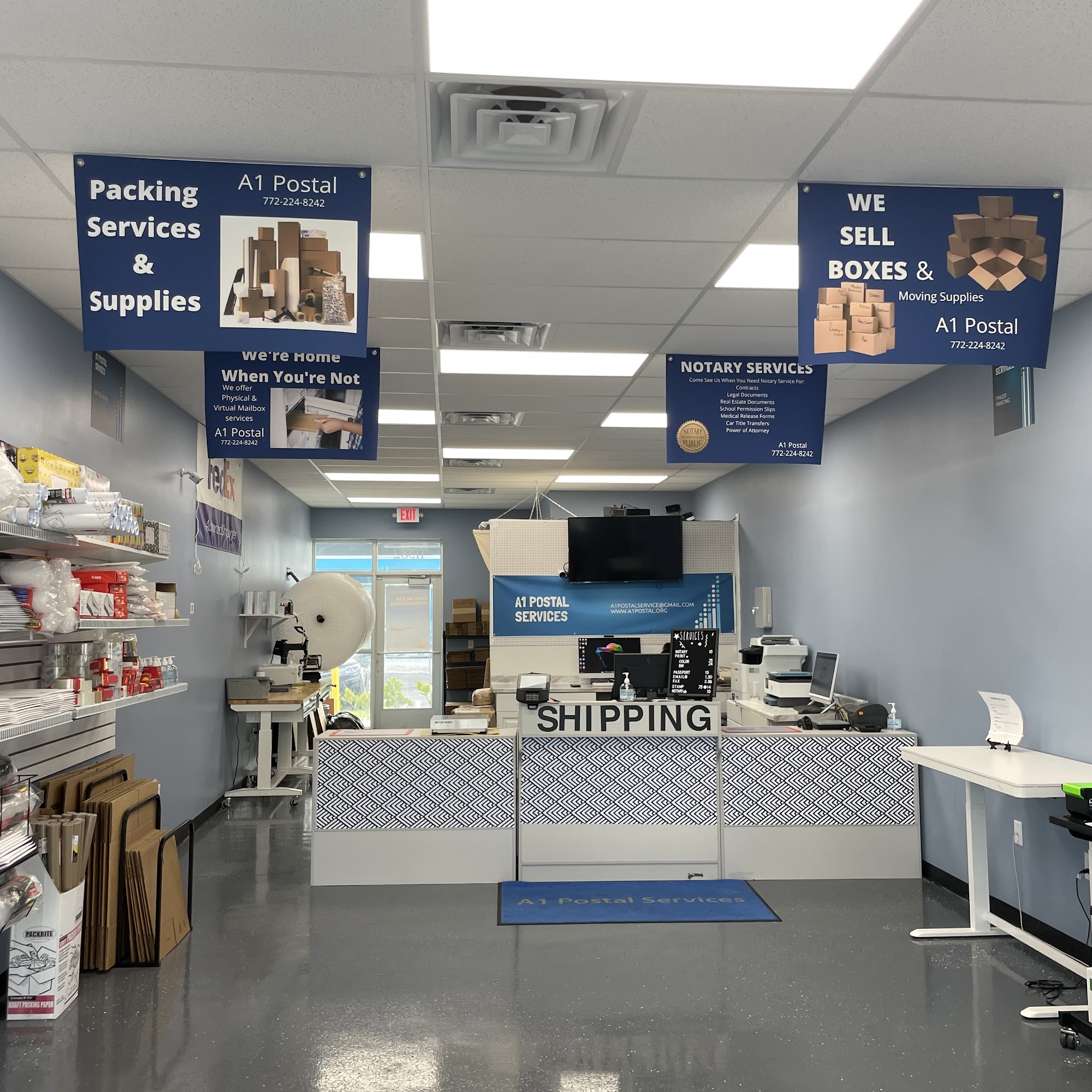A1 Postal Services is a comprehensive solution for mailing and shipping needs. As an authorized partner of FedEx, USPS, DHL, and UPS, it offers a range of services, including passport photos, notary services, document printing, faxing, copying, mailbox services, fingerprinting, and more. Customers appreciate the friendly and helpful staff, especially Sam, who goes above and beyond to assist them. Reviewers note her great attitude, patience, and willingness to accommodate customers even during busy times. A1 Postal Services is praised for being a convenient and personable alternative to traditional post offices, providing quick service without the long lines. It is recognized as a valuable addition to the community, encouraging support for local businesses. Overall, A1 Postal Services is highly recommended for anyone looking for reliable and friendly postal services.