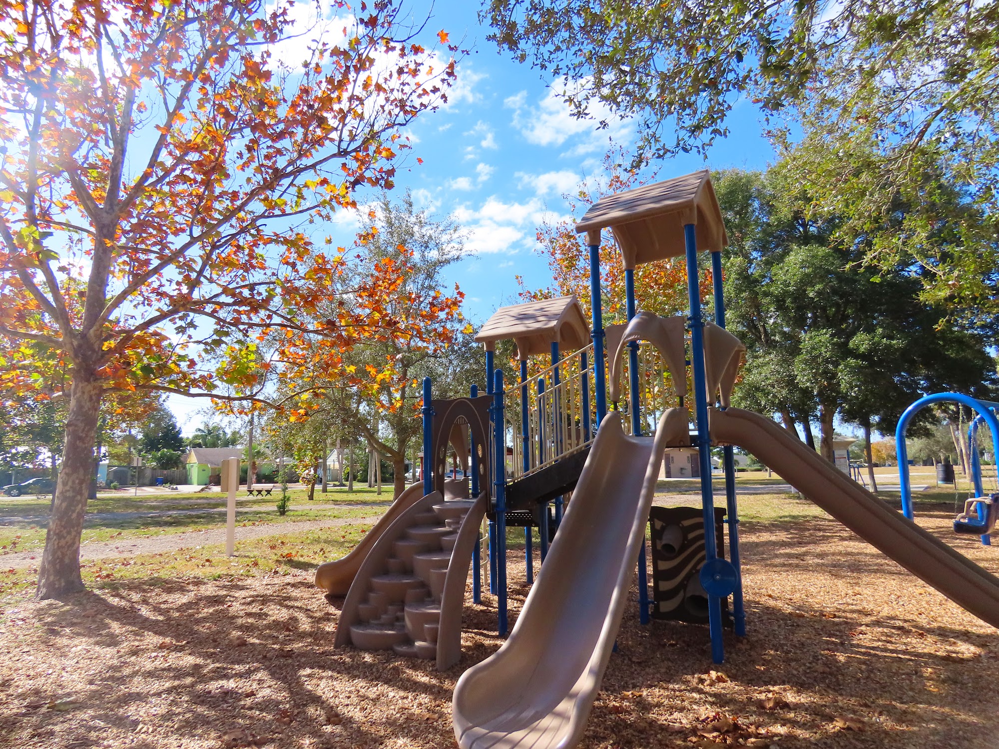 Taylor Park Rockledge is a charming and peaceful spot perfect for families and dog walkers. The park features a beautiful, serene garden with memorials to loved ones and a quiet, secluded atmosphere. It offers various amenities, including playground equipment like swings and slides, a large grassy area for activities like T-ball, and clean restrooms. There are also workout stations mainly for wheelchair-bound visitors, providing opportunities for fresh air and physical activity. The park has accessible parking with many handicapped spaces, making it easy for everyone to visit. Overall, it’s a lovely, quiet place to reflect, play, or enjoy a walk with pets.