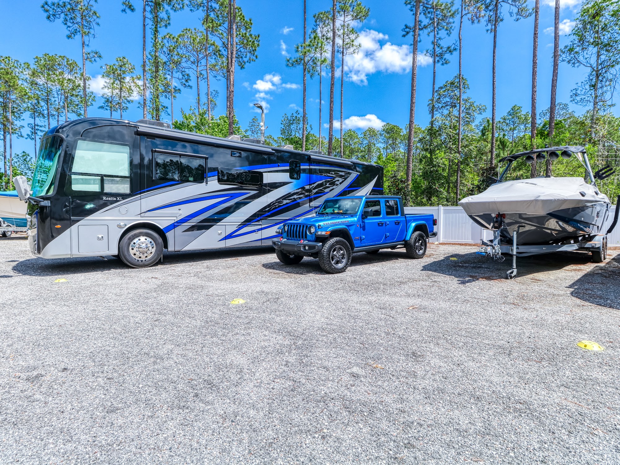 RecNation RV & Boat Storage in St. Johns, FL offers secure and affordable storage solutions for a variety of vehicles, from jet skis to Class A motorhomes. Located at the corner of St. Johns Parkway and Longleaf Pine Parkway, just down the road from Patriot Oaks Academy, the facility provides uncovered storage units with 24/7 access for the convenience of customers. The storage units are secure, weatherproof, and available at affordable rates, making it easy to store vehicles without breaking the bank. Customers praise the smooth and seamless experience when switching locations, thanks to the helpful staff, particularly Tom. The phone app payment system is also noted as user-friendly. While some customers express concerns about rate hikes, insurance charges, and occasional gate issues, the majority of reviews highlight the facility's reliability, safety, and convenience, making it a highly recommended option for RV, boat, and vehicle storage in the area.