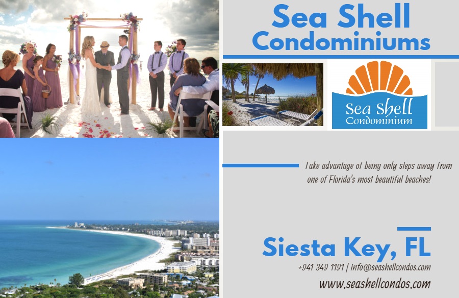 Sea Shell is a gated complex with 49 condos located directly on Siesta Key/Crescent Beach, rated the #1 beach in the U.S. Steps away you’ll find restaurants, shopping plazas, sports rentals and Point of Rocks, an area rich with coral formations and colorful marine life that is perfect for snorkeling or diving. BBQ Grilles, beach lounges, beach towels, elevators, laundry facilities, heated pool, assigned covered parking, HBO channels and free Wi-Fi are some of the amenities Sea Shell offers. Our rental office is on-premises and it is managed by our onsite friendly staff.