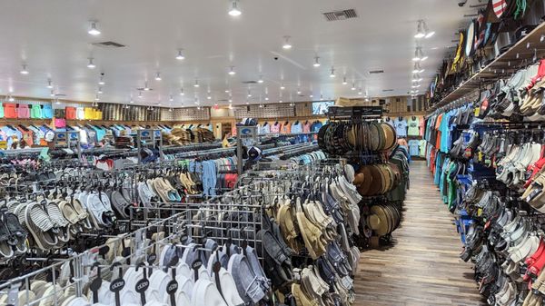 Shirt Shack - Sebring FL is a large, well-stocked clothing store offering a wide variety of items including shoes, men's fishing apparel, kid's clothing, sunglasses, hats, wallets, purses, and swim trunks. The store has a friendly and knowledgeable staff ready to assist customers. Although some find the prices a bit high, the store often has good inventory and a variety of styles, especially for popular brands like Hey Dudes. Customers praise the store for its cleanliness, extensive selection, and the surprising size, as it appears smaller from the outside but is much larger inside. Many visitors spend hours browsing through the many options available. The shop provides easy checkout, and it accepts Apple Pay and Google Pay, making shopping convenient. Overall, Shirt Shack - Sebring FL is known for its great service, wide selection, and friendly atmosphere, making it a popular shopping destination in Sebring.