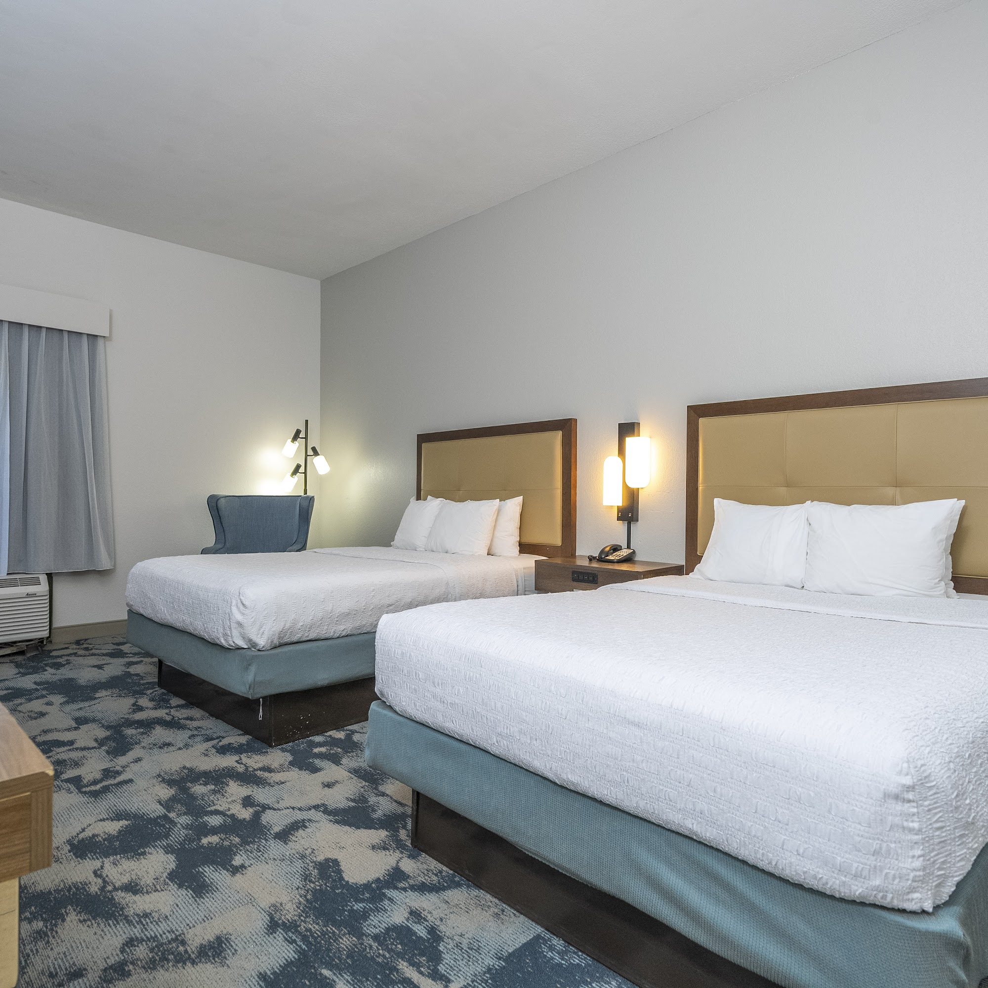 It recently remodeled do not believe Hilton.com website, there are no more couches in any of the rooms! The hallways had an odor and they have maintenance issues with the AC unit and post remodel, plus something that looks like mold in the bathroom.