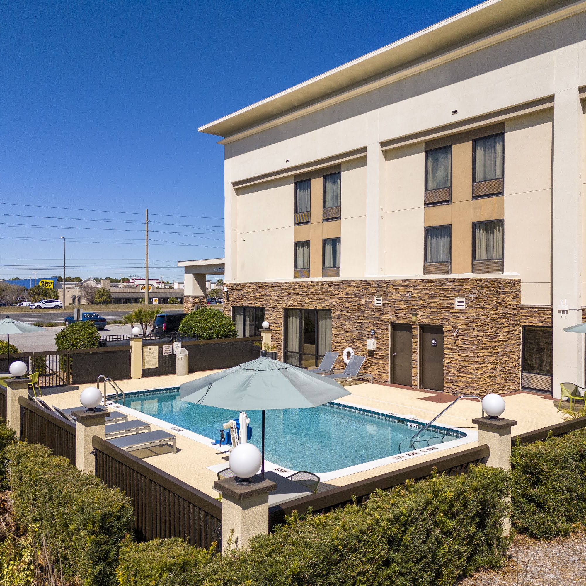 Hampton Inn Spring Hill is a well-maintained hotel that offers a comfortable and pleasant stay for guests. The staff is highly praised for their friendliness, professionalism, and helpfulness. The front desk team, especially Jenita, provides excellent customer service, and the overnight manager, Kelly, handles various situations calmly and professionally. Guests appreciate the well-kept breakfast area, which features a variety of options like eggs, cereal, muffins, bread, and fresh juice, served by courteous staff who ensure cleanliness. The rooms are generally clean and bright, with amenities such as small refrigerators, though some guests have noted a strong cleaning smell and humidity in the bathrooms. The hotel accommodates dogs, which was noted by some visitors. The pool is well-maintained and clean, adding to the overall positive experience. Location-wise, the hotel is convenient, with many stores nearby, including a Dunkin Donuts right next door, and is close to local attractions such as Weeki Wachee Waterpark. Guests feel safe walking around the area and appreciate the ample parking, including space for boats. Overall, Hampton Inn Spring Hill provides friendly service, clean accommodations, and a good location, making it a recommended choice for travelers.