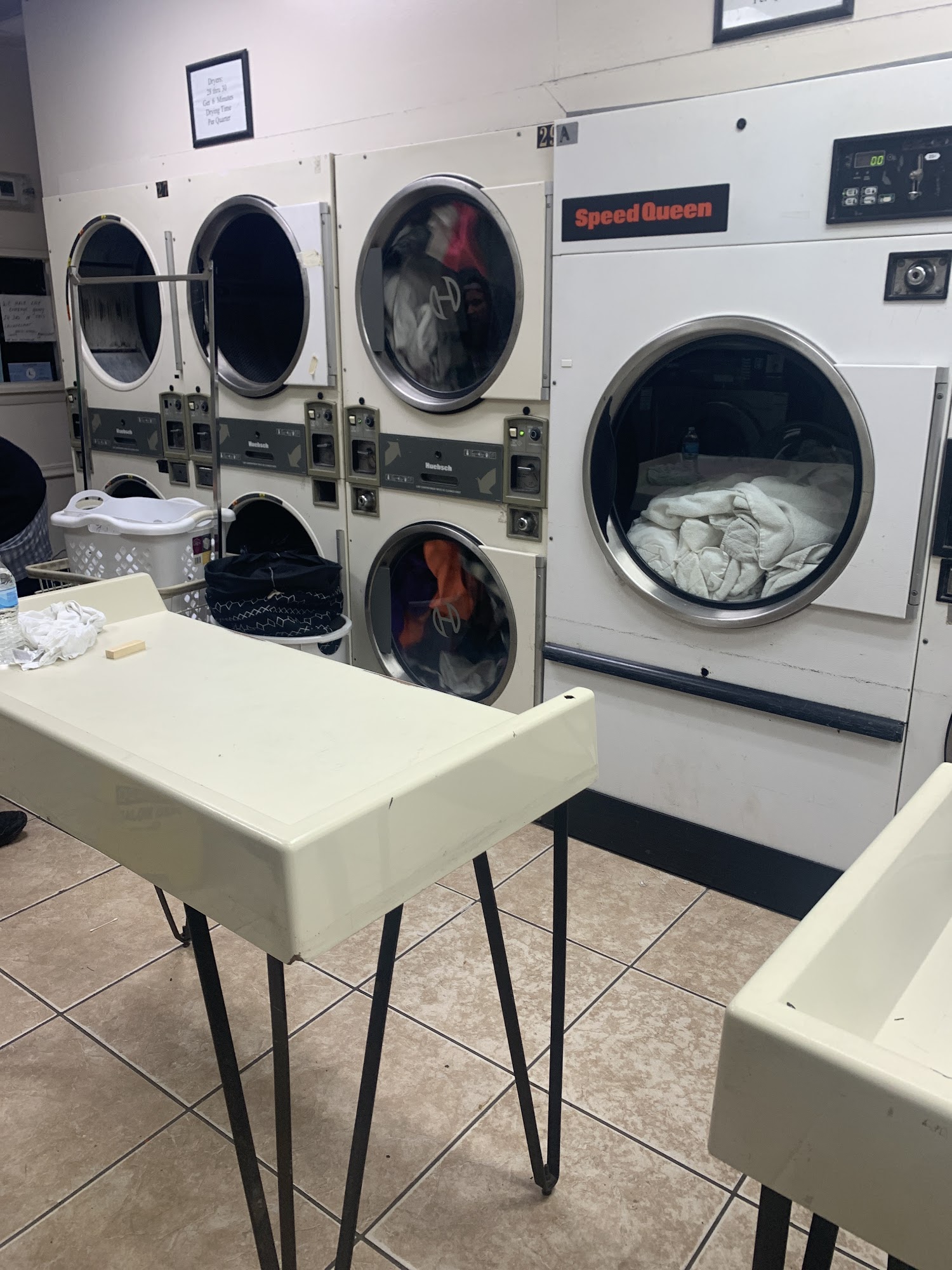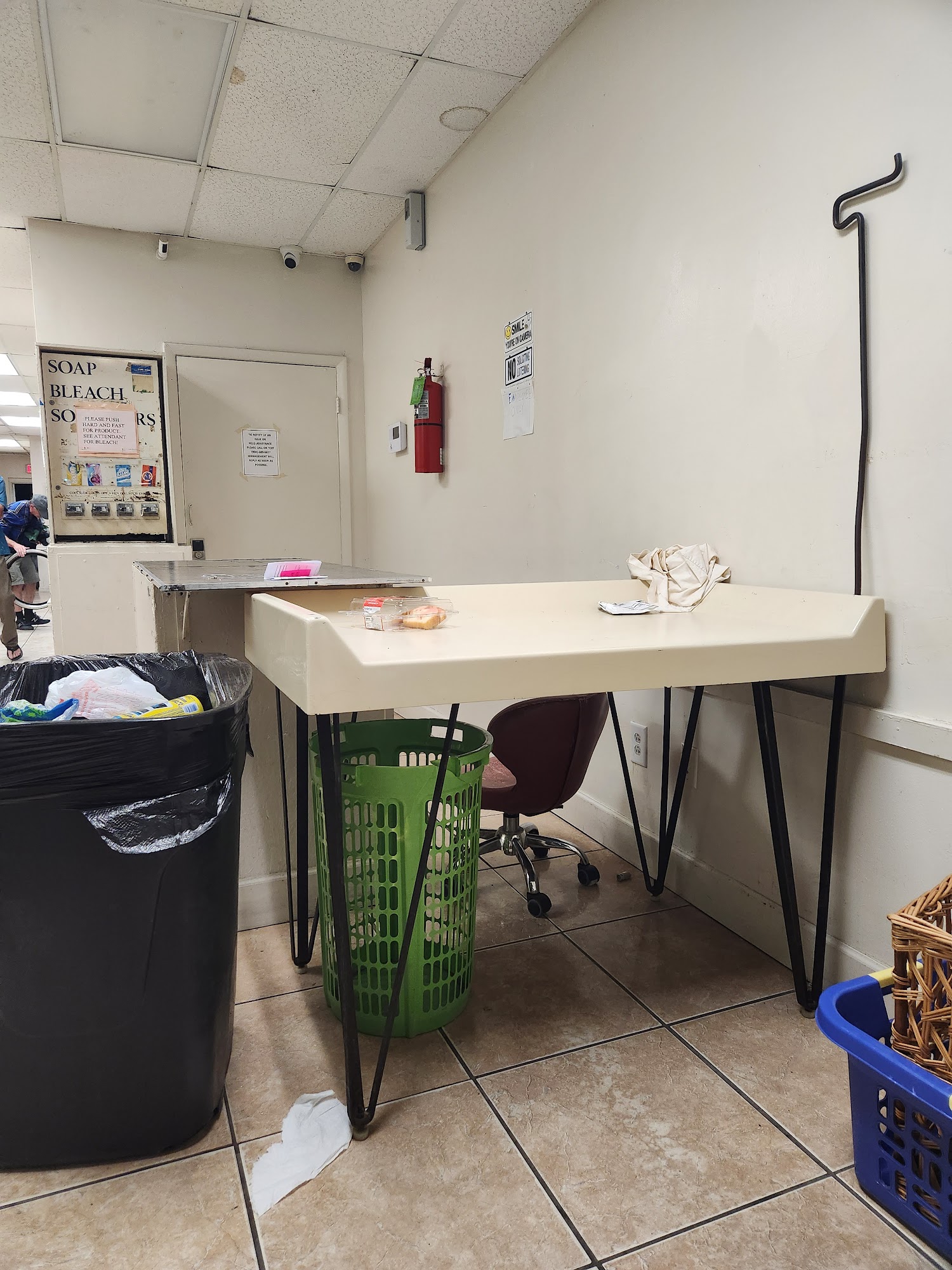 Very clean. The ladies that work there are very nice. A place that is well staffed safe. No one fighting over fryers or washers and no one stealing your clothes.