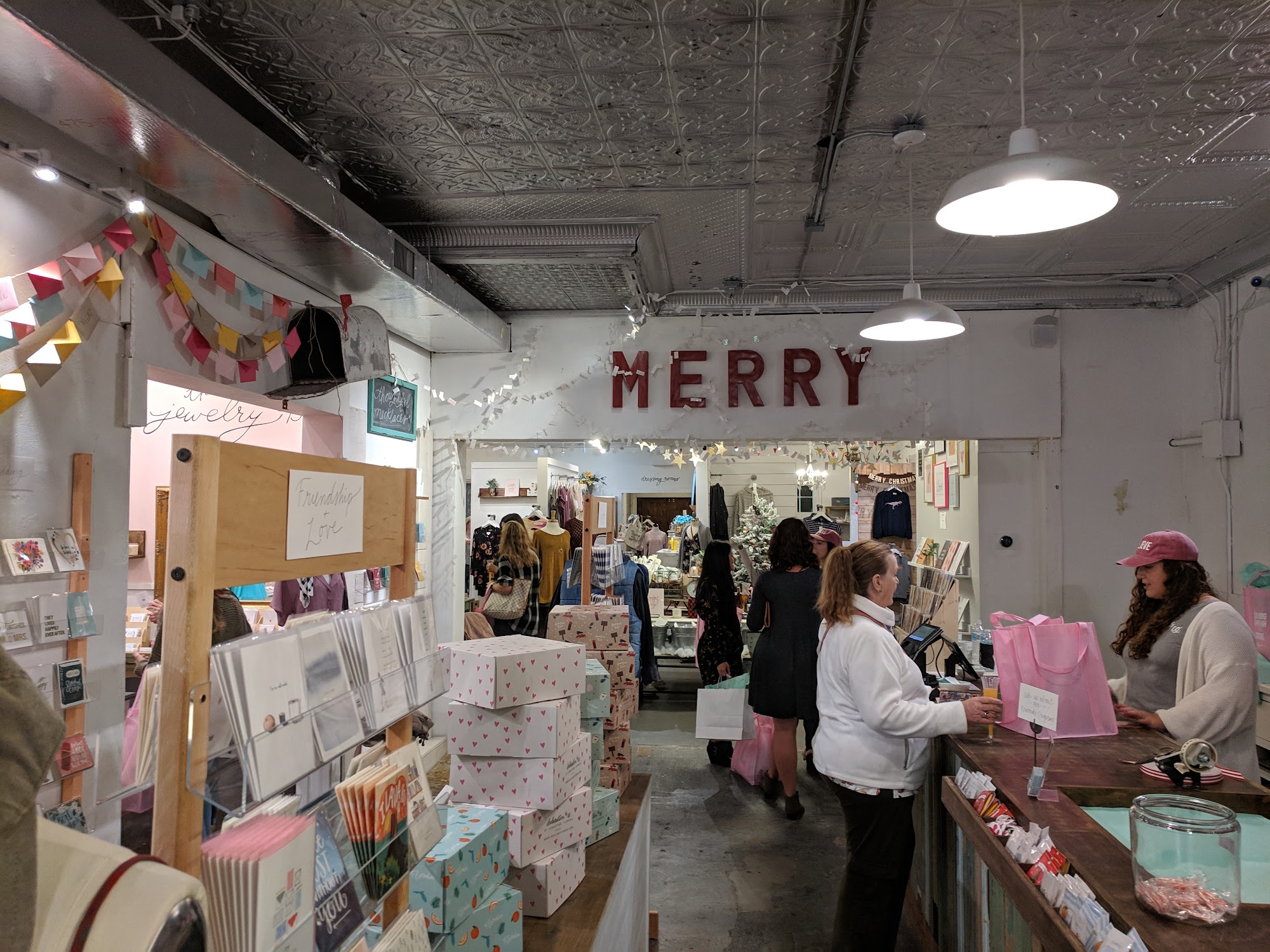 What a fun place! They sell candles, cards, and super cute, trendy clothes!