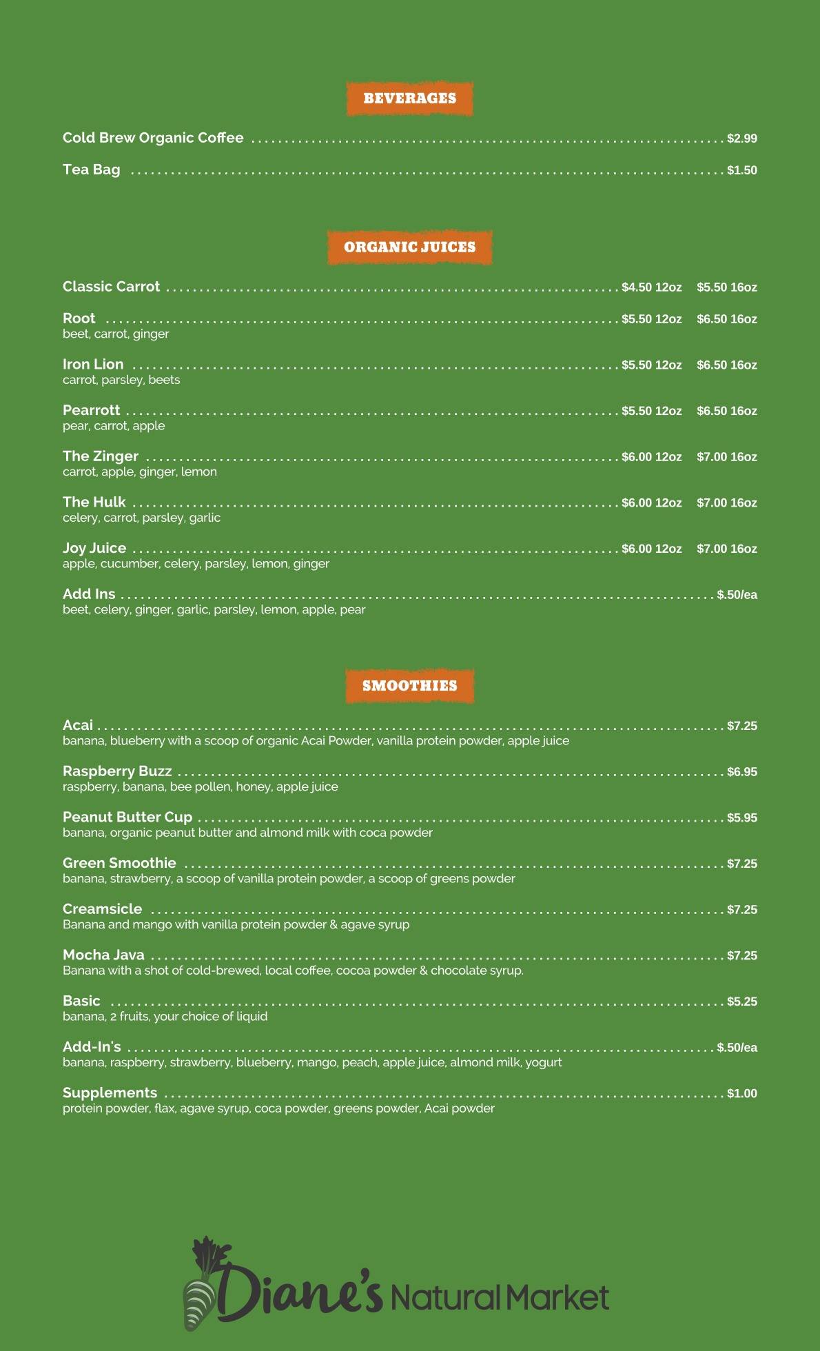Diane’s is proud to have served the St. Augustine community for over 35 years. Our mission is to be your locally owned and operated source for natural grocery, supplement, and health & beauty options, while also serving as an informational resource of the natural products industry. Dedication to our customers, the community, and the spirit of healthy living has always been the foundation of Diane’s. We hope this store is a reflection of this continued commitment and our gratitude to the City of St. Augustine and it’s surrounding communities, whose support over the years is truly appreciated.
