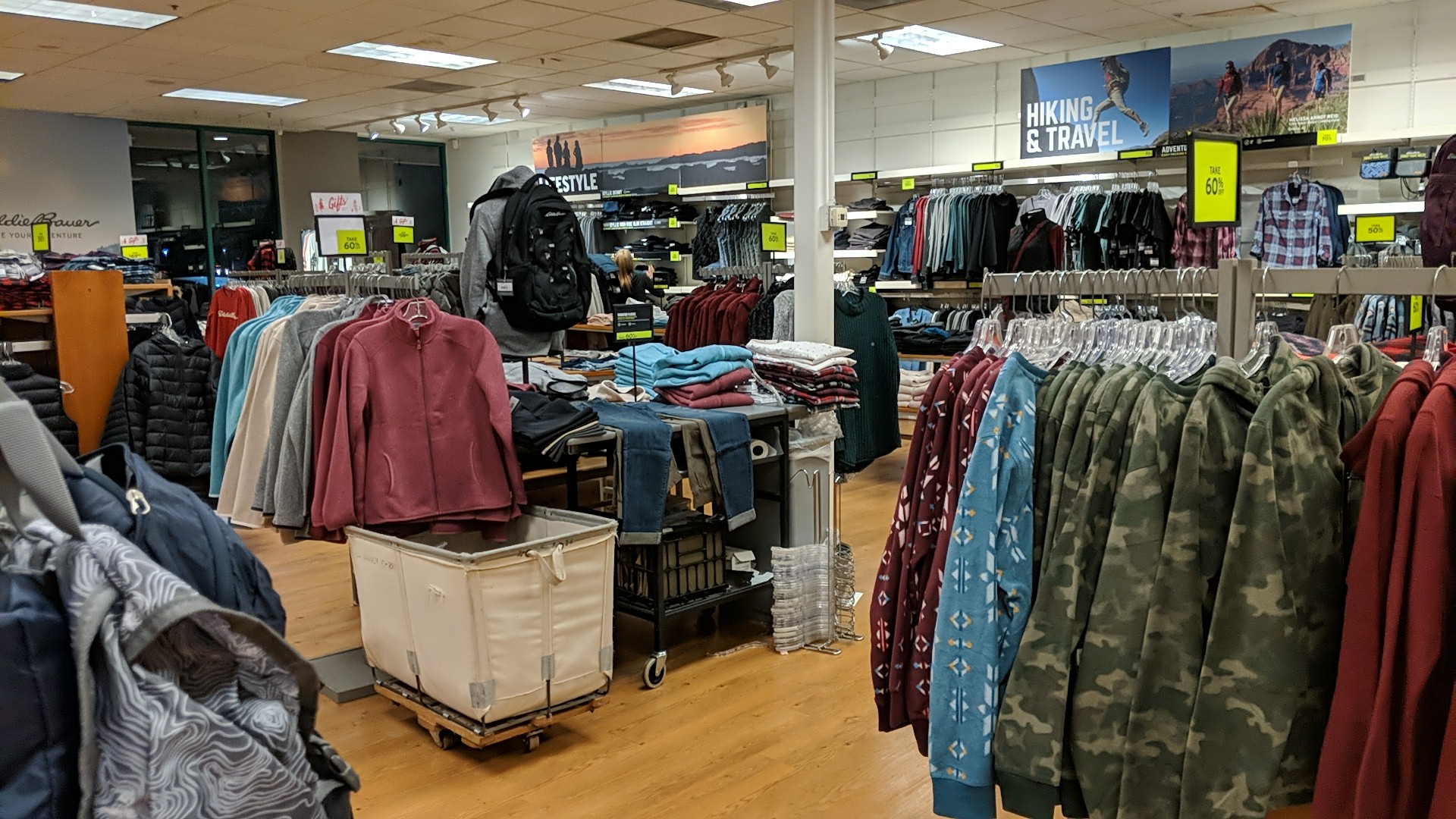 Like Eddie Bauer clothes and gear. Outlet prices other than clearance items aren't nearly as good as they were a few years ago.
