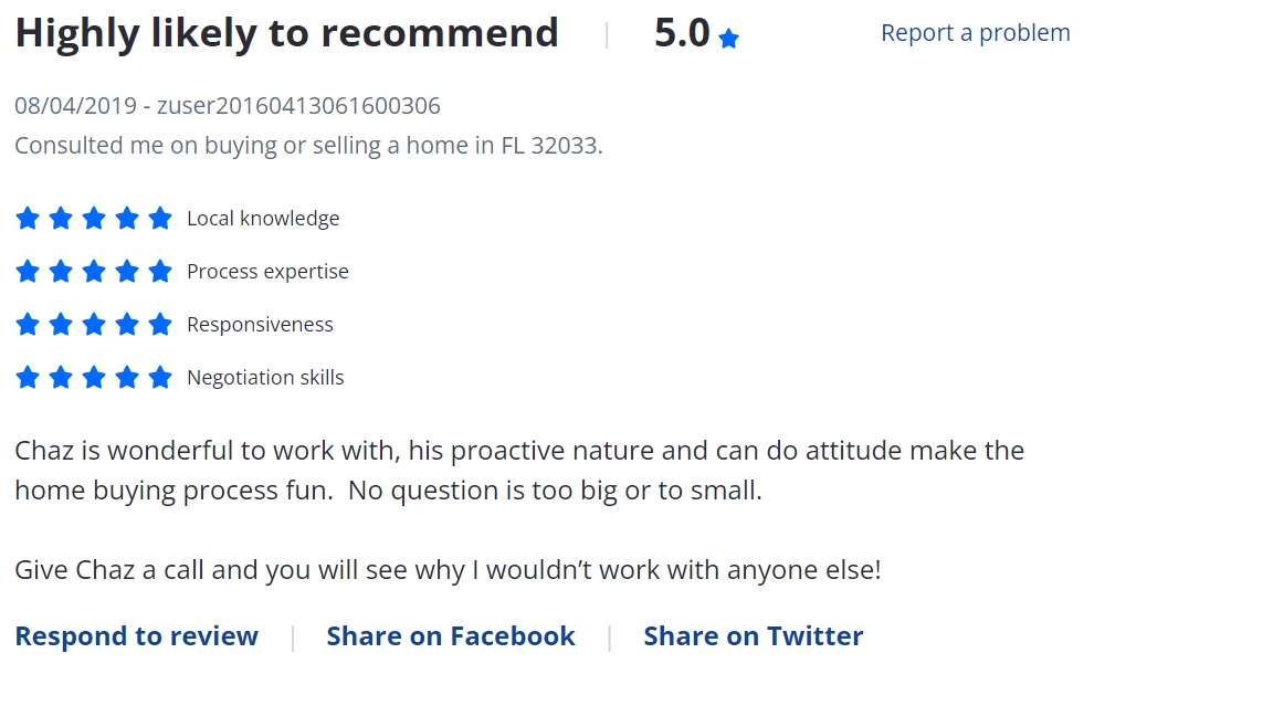 Chaz is fantastic. He is thorough, honest, and a very good communicator. His knowledge around not only real estate, but the trades needed to rehab a place, is very apparent. He’s very well connected in the St Augustine area and is willing to help his clients after the deal is done.