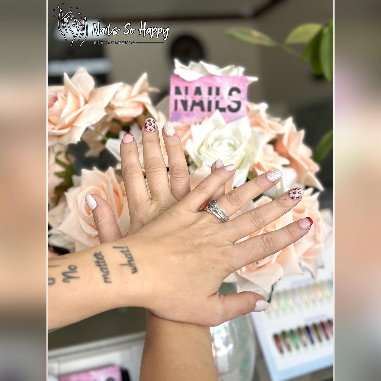 Enjoy unsurpassed service in absolute serenity—all in a stunning space. Massaging pedicure chair with bubbly aromatic soak awakens your senses while the relaxing atmosphere creates in you an utmost spa experience like never before. Whether you're looking to find your regular to-go nail place, a hangout group meetup, or simply a quick escape from busy life, there's no better place to unwind than at the Nails So Happy in St. Augustine on A1A.