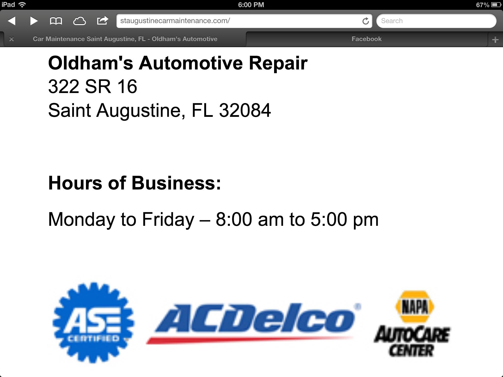 Oldham's Automotive is a leading auto repair shop in St. Augustine, FL, serving the area since 1985. It is described as the best garage in town, with honest and dependable service that multiple generations of a family have trusted for years. Customers report it is the only place they will take their out-of-warranty vehicles, praising the skilled and affordable work. The staff is noted for being amazing people—good, fast, effective, and honest mechanics who keep it real with great pricing. They provide a full range of services and are known for fixing issues quickly, even when other shops could not. The team is accommodating, having helped customers in urgent situations, such as a vehicle stranded on the interstate, by making time despite being overbooked and busy. They complete repairs promptly and at an extremely reasonable price. The shop is very busy most days, so making an appointment is best. Customers consistently recommend the shop, stating they won’t trust anyone else with their vehicle.