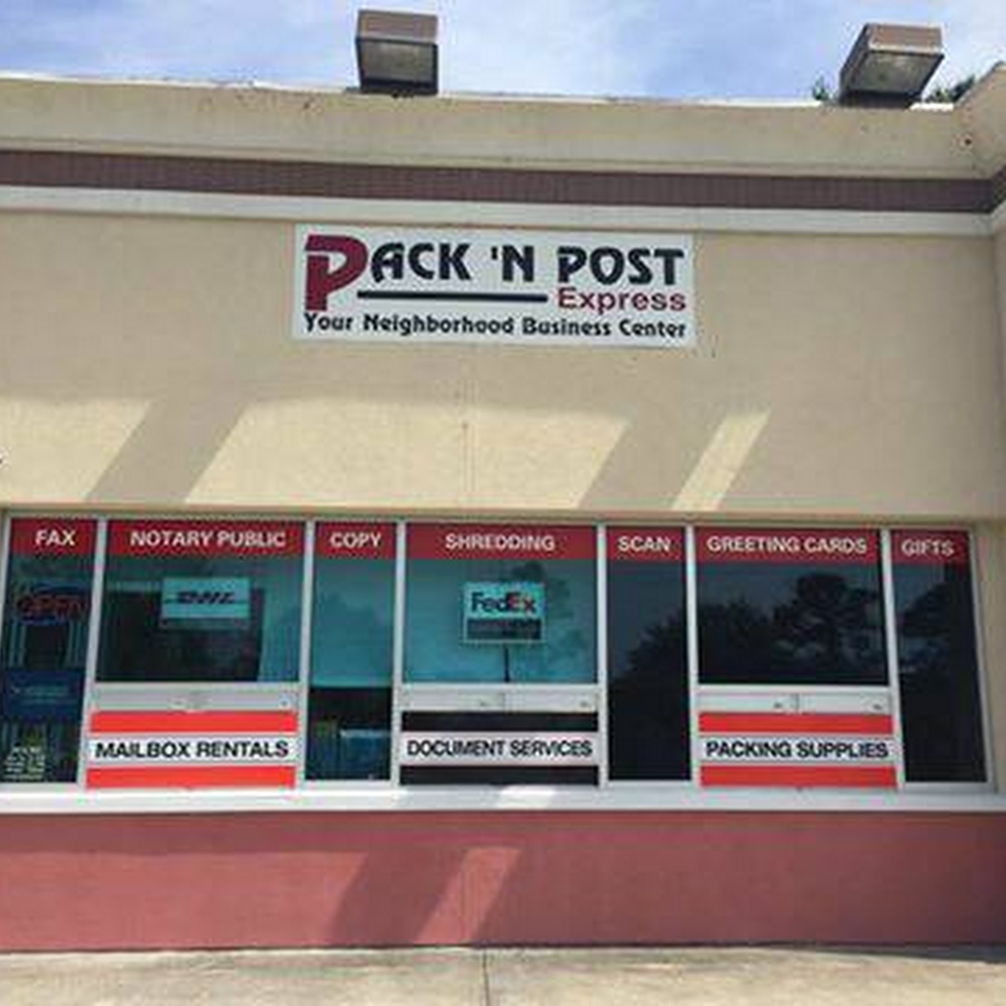 Pack N Post Express is a neighborhood business center offering packaging and shipping services and supplies, mailbox rentals, package receiving, and fax, scan, and print services. It is a FedEx Authorized Ship Center, DHL Service Point, and USPS Approved Shipper Program location, also providing fingerprinting services. The staff is consistently described as very friendly, helpful, knowledgeable, patient, and pleasant. Customers report efficient service, with items arriving in great condition and tracking information emailed promptly. The experience is often noted as rewarding and extremely helpful, with staff taking time to explain processes clearly. The store also has some fun unique items and features plenty of free, convenient parking.